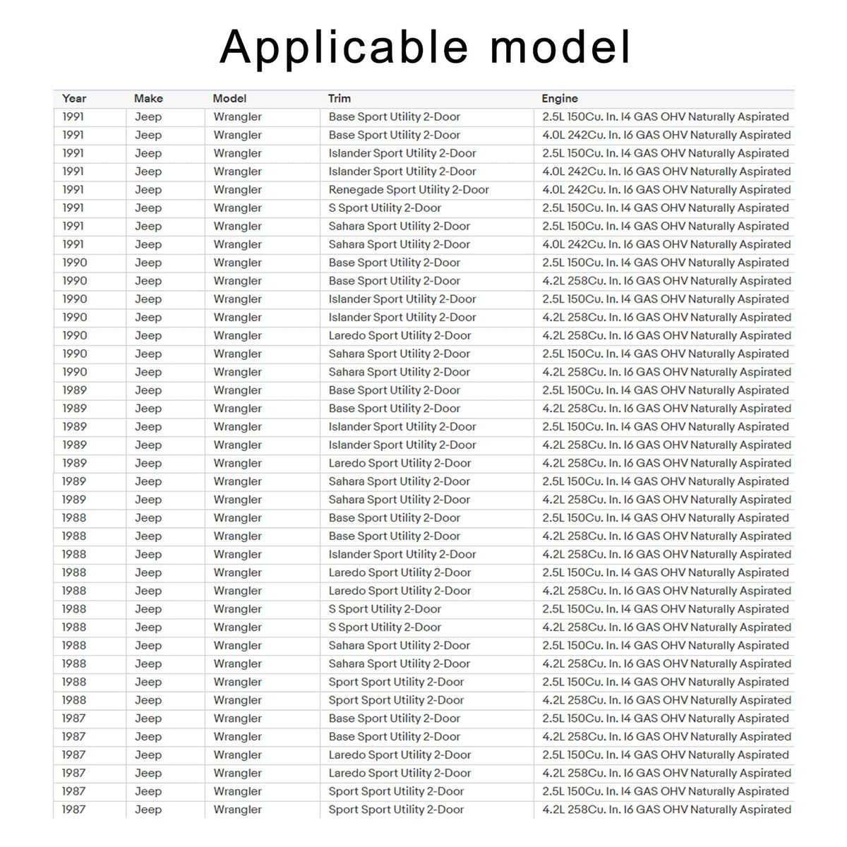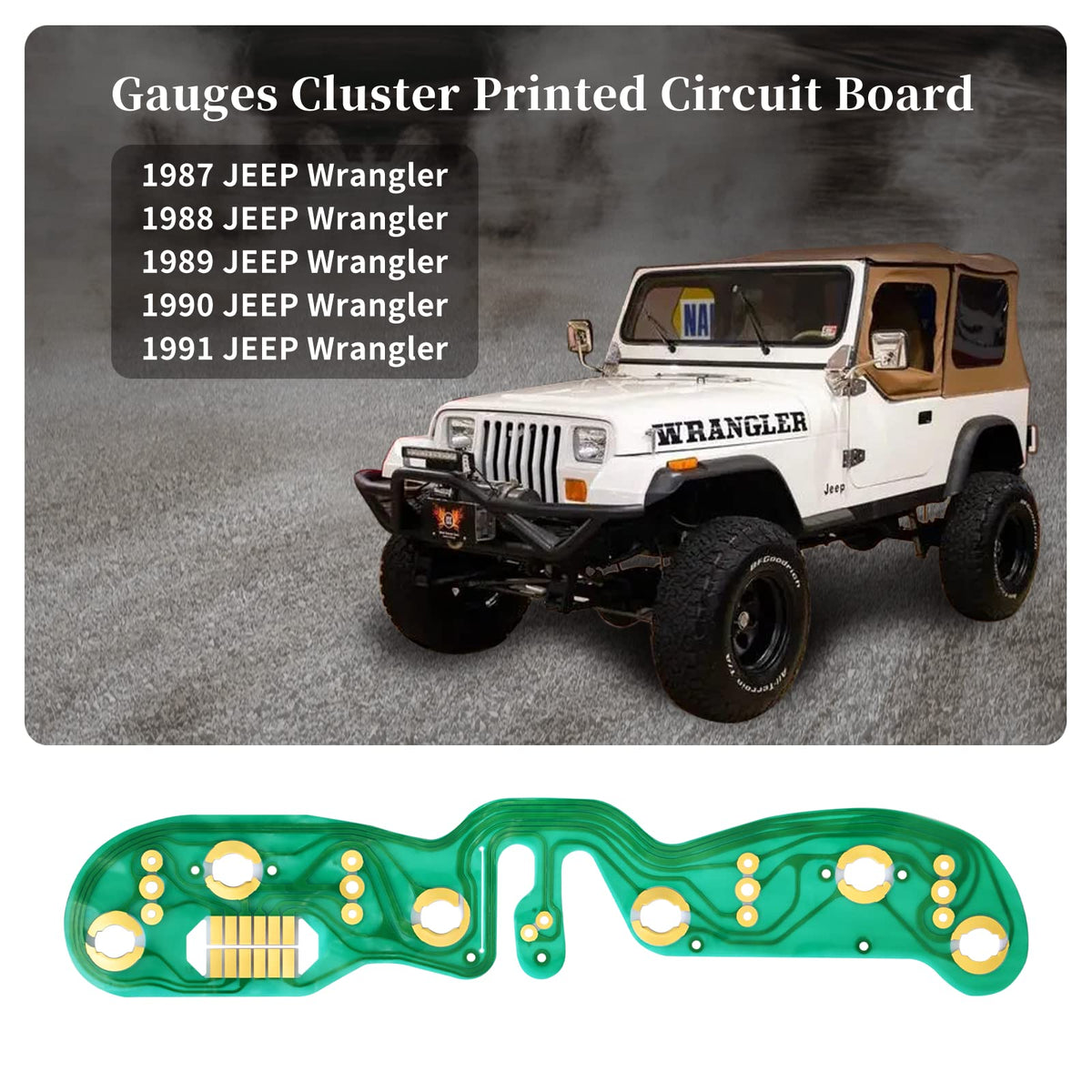 Q: Is this gauge cluster circuit board compatible with all Jeep Wrangler models?A: No, this gauge cluster circuit board is specifically designed for 1987-1991 Jeep Wrangler YJ models. It will not work on later models or those without a clock in the middle of the dashboard.