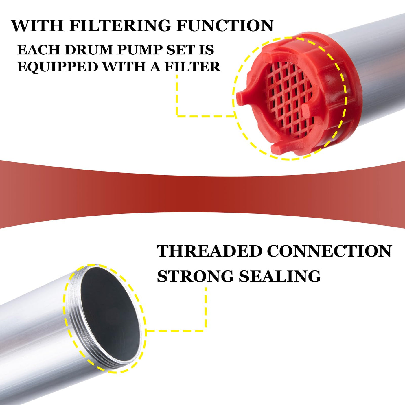 This barrel pump is designed to easily pump 5 to 55 gallon drums. Fits for transferring a variety of oils: diesel, gasoline, kerosene, hydraulic oil, etc. It is ideal for domestic, industrial, marine and farm use.
