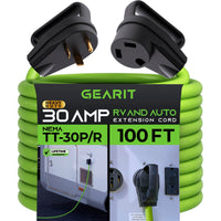 Gearit 30-Amp Extension Cord For Rv And Auto, (100-Feet) 3-Prong 125-Volt 10/3 Stw 10Awg Gauge 3 Wire, Nema Tt-30P To Tt-30R, Ou