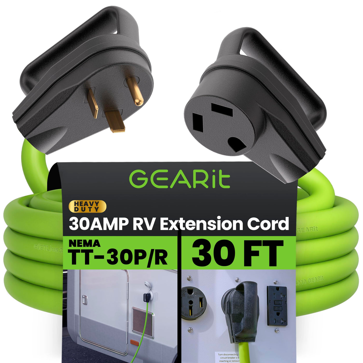 Gearit 30-Amp Extension Cord For Rv And Auto, (30-Feet) 3-Prong 125-Volt 10/3 Stw 10Awg Gauge 3 Wire, Nema Tt-30P To Tt-30R, Out