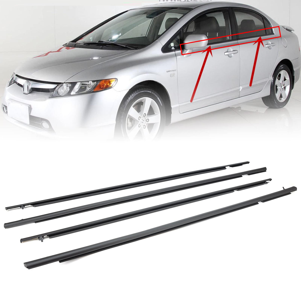 Geataat 4Pcs Weatherstrip Window Moulding Trim Seal Belt Compatible With 2006-2011 Honda Civic Replace# 72460-Sna-A01 72410-Sna-