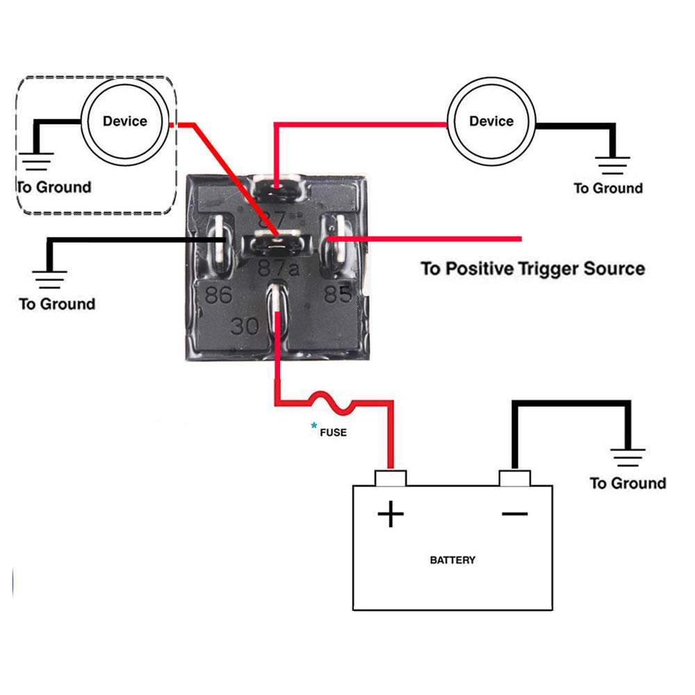 Interchangeable/Compatible with: All automobiles and devices equipped with a 12 Volt DC power source. Product Features: Built-in fuse socket with 30A blade fuse. Bosch style 5-Pin SPDT (Single Pole Double Throw) Relay. 30A High Switching Capability. Wire Specifications: Black - Ground (85), Red - VDC (30), White - Trigger (86), Blue - Output N/O (87). Yellow-87a Output Closed Contact The built-in fuse holder on the automotive relay eliminates the need of a separate fuse holder in-line of the circuit, saving both space and money. In addition to the build-in fuse, the purchase of this relay includes the relay harness, which features an interlocking function for ease of grouping multiple relays together. Metal mounting tab on the electrical relay promotes easy installation.