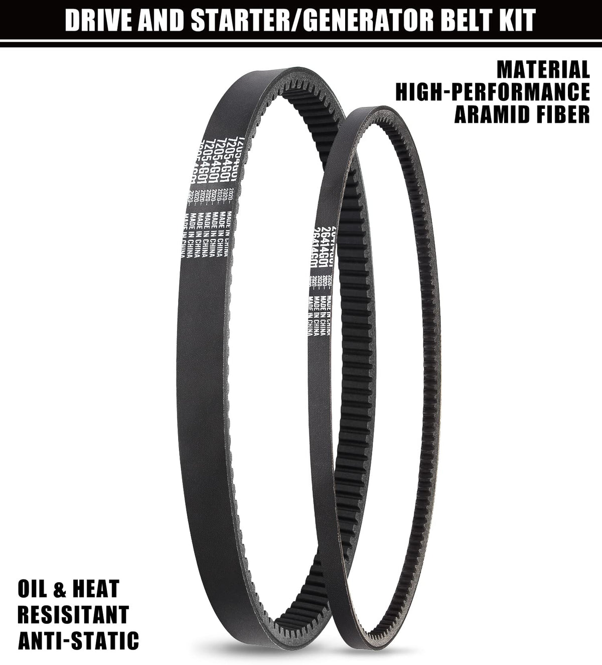 Geggkake Ezgo Drive Belt & Starter Generator Belt Kits, Fits 4 Cycle 1994-Up Ezgo Txt/Medalist Gas Golf Cart, Oem# 72054G01, 72024G01, 72025G01, 26414G01