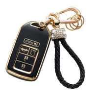 Key Fob Cover for Honda Accord Civic CRV Pilot Odyssey Smart Remote Key with Bling Keychain Lanyard Color: Black & Gold Material: Premium TPU Package Include: 1 * Soft TPU Key Protector for Honda (Note: NOT included the car key) 1 * Metal Circle Ring Clip with 2 Rings 1 * Metal D-buckle 1*Shiny Hand-made Woven Lanyard 1 * Screwdriver (Please keep them, you will need them to take out the keys)
