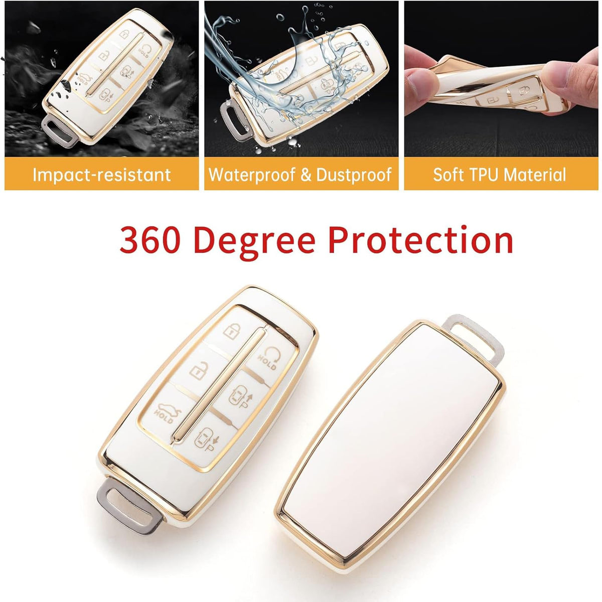 Gematay For Hyundai Key Fob Cover With Keychain Lanyard, Key Fob Protector Shell Compatible With Hyundai Genesis G80 Gv80 6 Butt