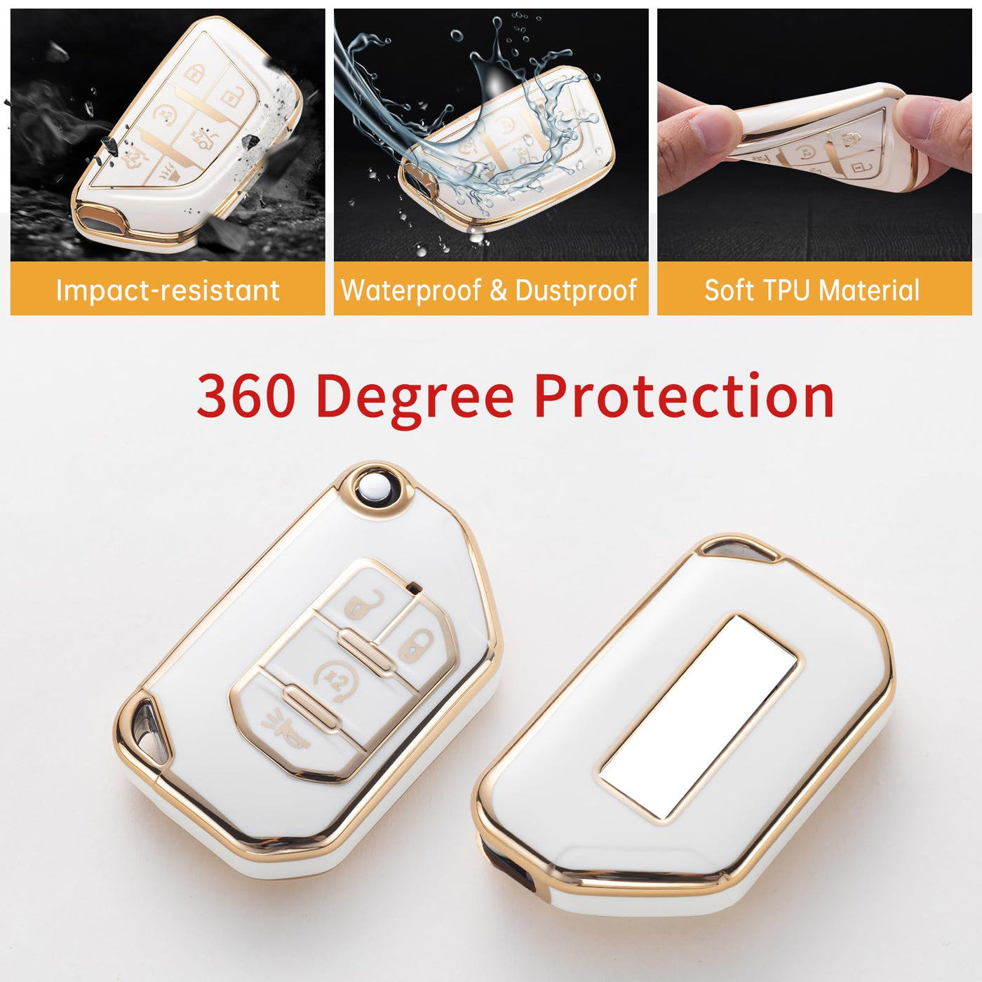 Gematay For Jeep Key Fob Cover With Keychain Lanyard, Key Fob Protector Shell Compatible With Jeep Gladiator Jt Wrangler