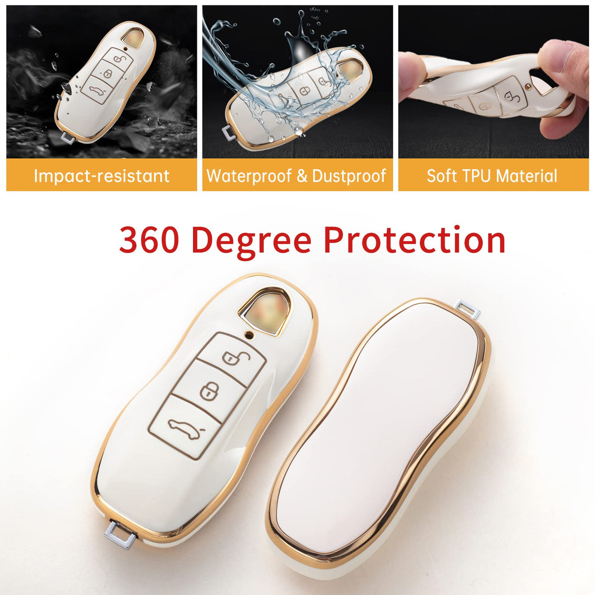 Gematay For Porsche Key Fob Cover With Keychain Lanyard, Key Fob Protector Shell Compatible With Porsche Boxster Cayenne Panamer