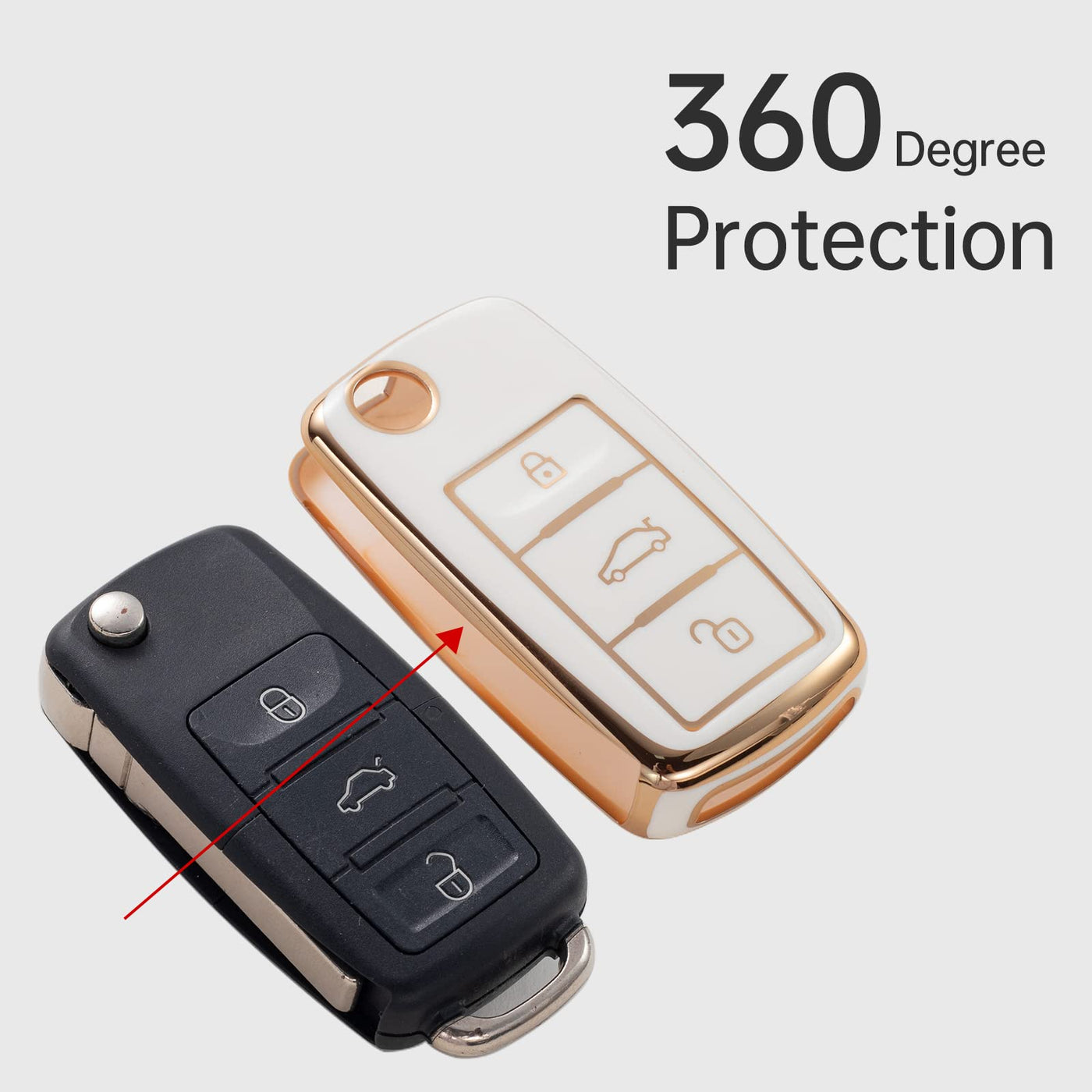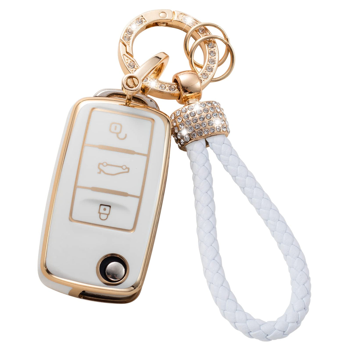 Gematay For Vw Volkswagen Key Fob Cover With Keychain Lanyard, Soft Tpu Key Fob Protector Shell Compatible With Vw Jetta Golf Po