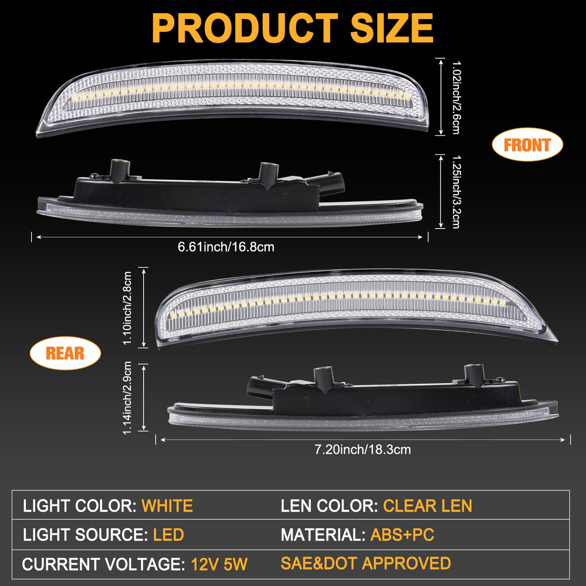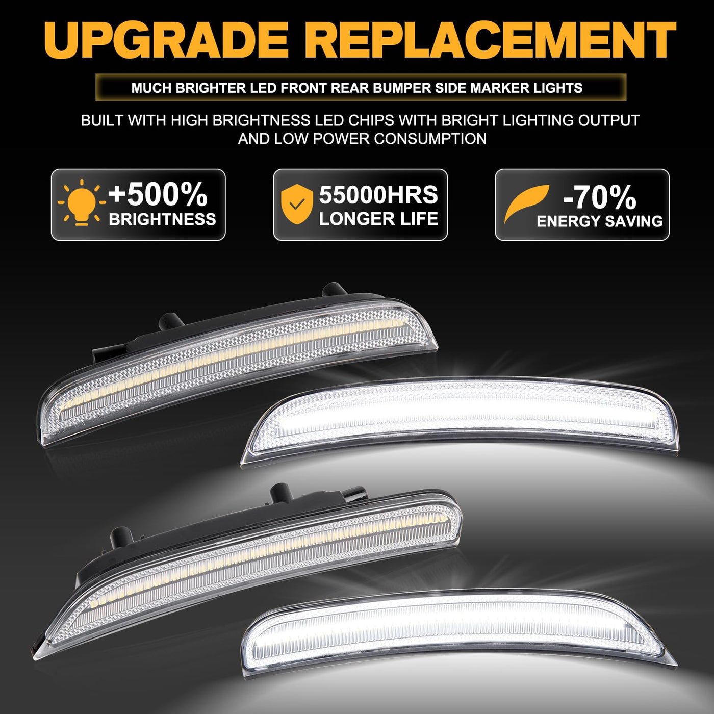 Gempro White Led Side Marker Lights Compatible With Dodge Charger Ld 2015-2023 Front Rear Bumper Marker Lamps 4Pcs, Clear Len