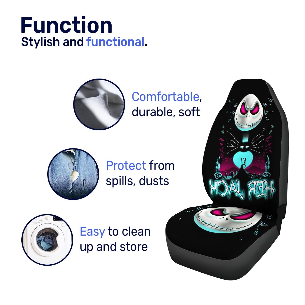 Genany Horror Nightmare Skellington Couple 2 Front Car Seat Covers For Car Truck Sedan Suv, Halloween Car Seat Cover, Durable Au