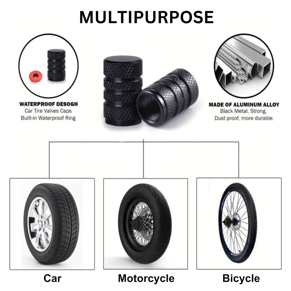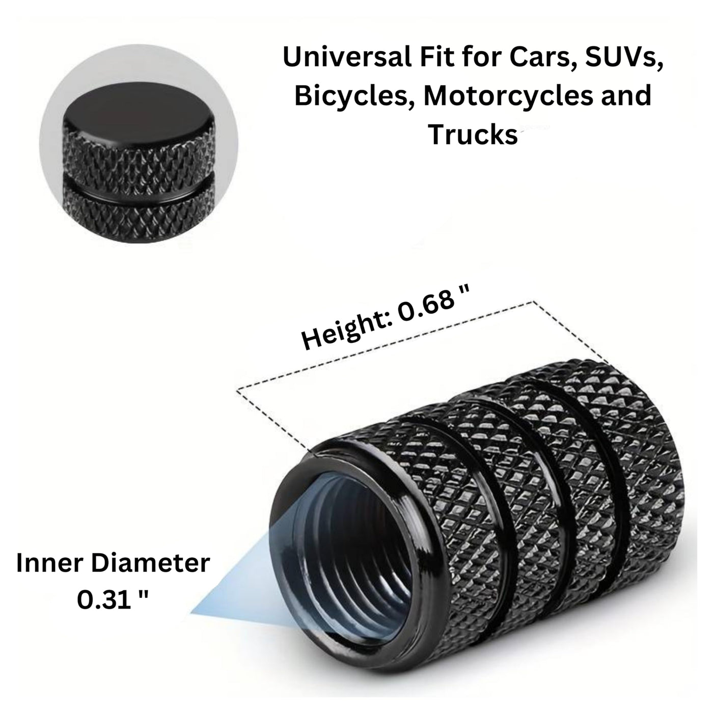 Upgrade your vehicle's protection with our resilient tire valve stem caps, meticulously crafted to safeguard your valves against corrosion and damage. Precision-engineered from premium black anodized aluminum, these caps boast a resilient, corrosion-resistant finish engineered to endure the harshest elements, ensuring long-lasting durability. Each cap is ingeniously designed with threading, guaranteeing a secure attachment to standard valve stems, offering peace of mind on every drive. Their sleek, low-profile design seamlessly integrates with a diverse range of vehicle styles, enhancing aesthetics without compromising functionality. In this convenient pack of four, you'll find comprehensive coverage for all your tires, preserving their pristine appearance and extending their lifespan. Thanks to their effortless screw-on installation, swapping designs or replacing lost caps is a breeze, saving you time and hassle. Regularly tightening them ensures a snug, protective seal that effectively prevents dirt and water from infiltrating valve stems, maintaining optimal performance and prolonging the life of your tires. Elevate your driving experience with these dependable tire valve stem caps, where durability meets style for unparalleled peace of mind on the road.