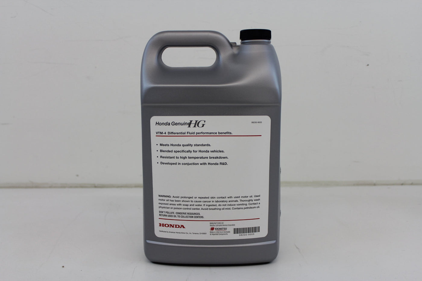 Q: Where is the Genuine Honda Fluid VTM-4 manufactured?A: The Genuine Honda Fluid 08200-9003 VTM-4 Differential Fluid is manufactured in Japan, ensuring high-quality standards as an OEM factory original part.