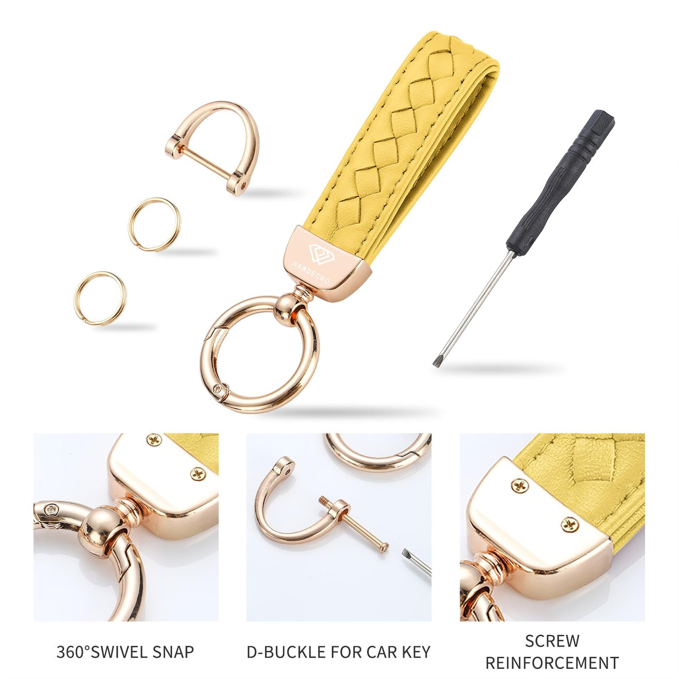Genuine Leather Keychains, Handmade Knit Sheepskin Car Key Chains For Women, Universal Key Fob Holder With 360 Degree Rotatable,