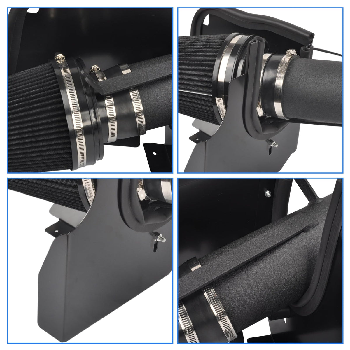 Q: What materials are used in the construction of the GESEXI Cold Air Intake System?A: The system features a durable carbon-black powder-coated steel heat shield, along with high-quality silicone couplers that ensure longevity and reliable performance.