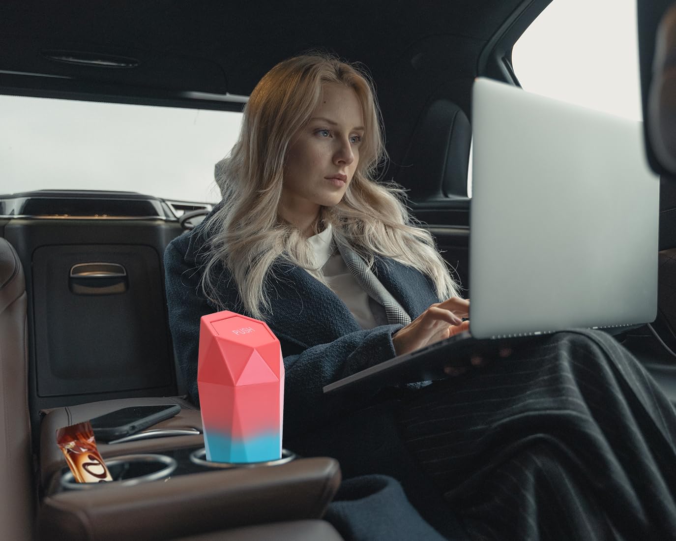 Car trash can with lid is made of ABS plastic, comes with a removable cover so that they can be easily be empty and cleaned all the way. You can easily clean out this mini garbage can with soap and water.
