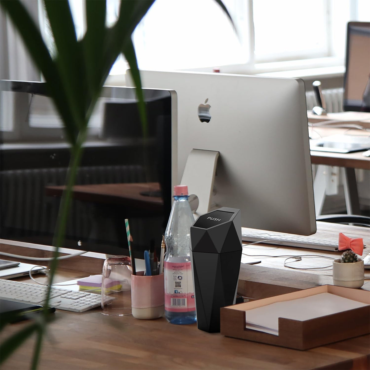Car trash can with lid is made of ABS plastic, comes with a removable cover so that they can be easily be empty and cleaned all the way. You can easily clean out this mini garbage can with soap and water.