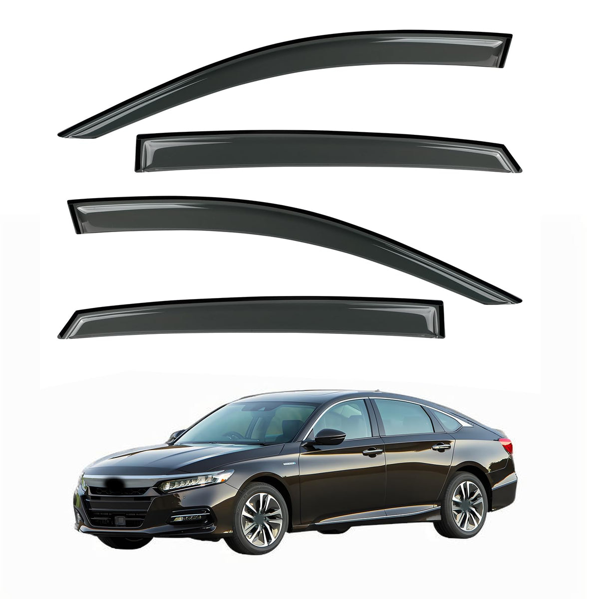 Caution:Do not touch the 2-3 days after the installation of water. In order to avoid double-sided adhesive to lose tackiness. Compatible with 2018-2022 Accord SedanItem Offered:4pcs Vent Window Visors (Tape Included)Position:For Front+Rear WindowsStyle:Outside Mount (Stick on to the door and above the windows. Not In-Channel Style)Material:Reinforced AcrylicColor:Dark Smoke TintInstallation:Direct Tape-On Design, Easy Peel-N-Stick Installation. No Cutting or Drilling Required. Installation Instruction Is Not Included.Warranty1 yearFeatures:* Fully window protected from sun shade, wind, rain, snow deflector.* Help reduce heat buildup in park vehicles by allowing air in when partially open.* Long lasting material designed to withstand the rigors of the elements.* Make it possible to leave the windows open a few inches to get fresh air even on rainy days.* Comes With Automotive-Grade Double-Sided Tapes.Easy Installation.* Dramatically Improve Styling and Appearance.