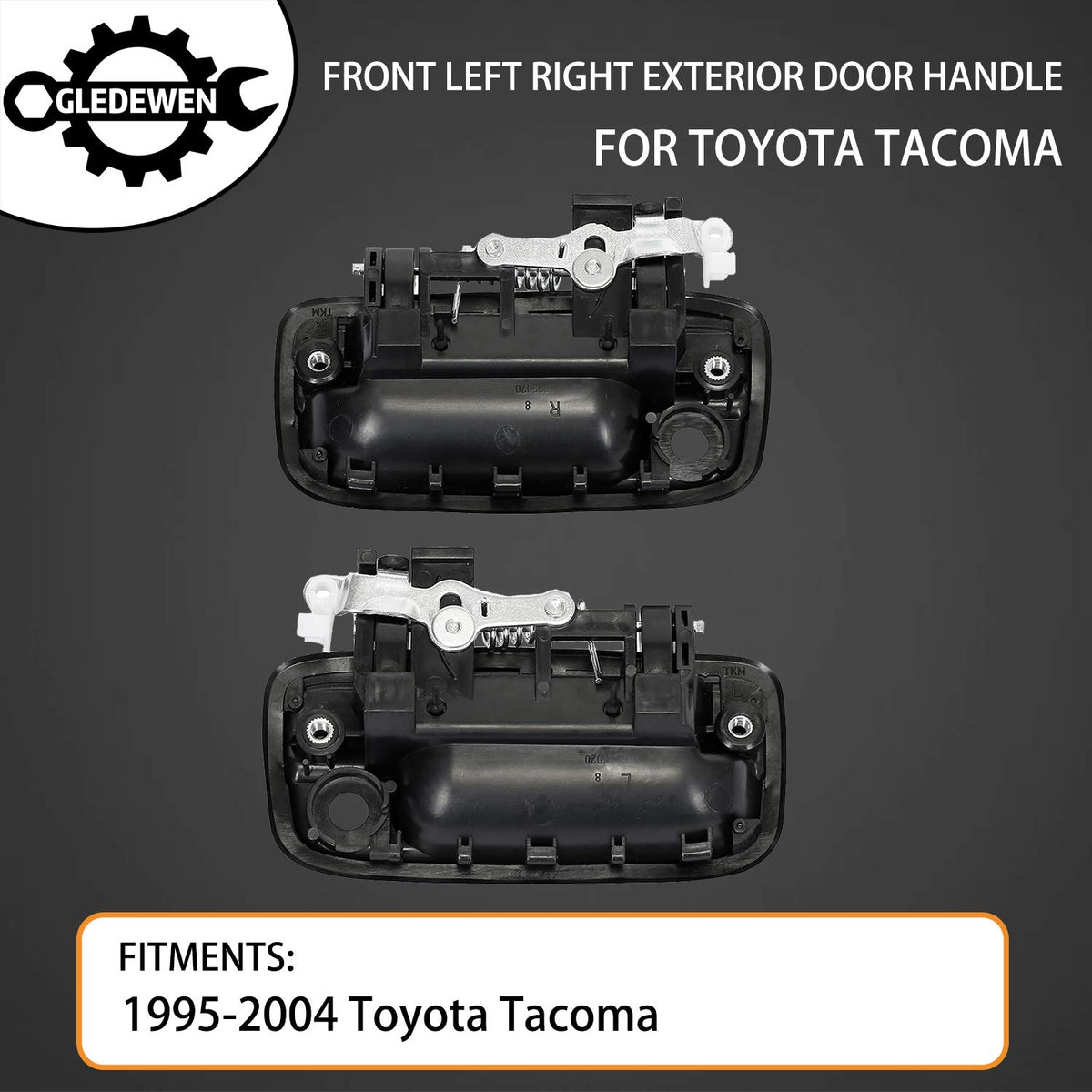 Q: What vehicles are compatible with the Gledewen Exterior Door Handle?A: The Gledewen Exterior Door Handle is compatible with various models of the 1995-2004 Toyota Tacoma, including the Base, DLX, Limited, Pre Runner, SR5, and S-Runner configurations, covering multiple engine options like 2.4L L4, 2.7L L4, and 3.4L V6.
