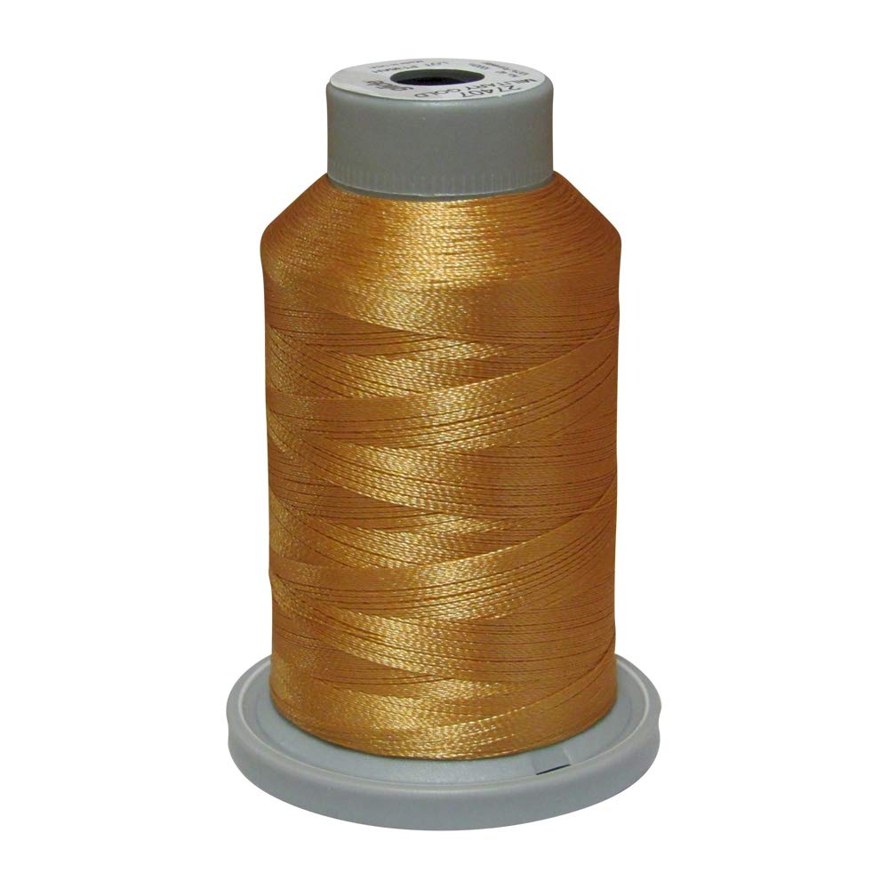 Q: What is the length and size of the Glide Thread Trilobal Polyester No. 40 spool?A: The Glide Thread Trilobal Polyester No. 40 comes in a 1000m spool, which is approximately 1100 yards long. The spool has a diameter of 1.75 inches.