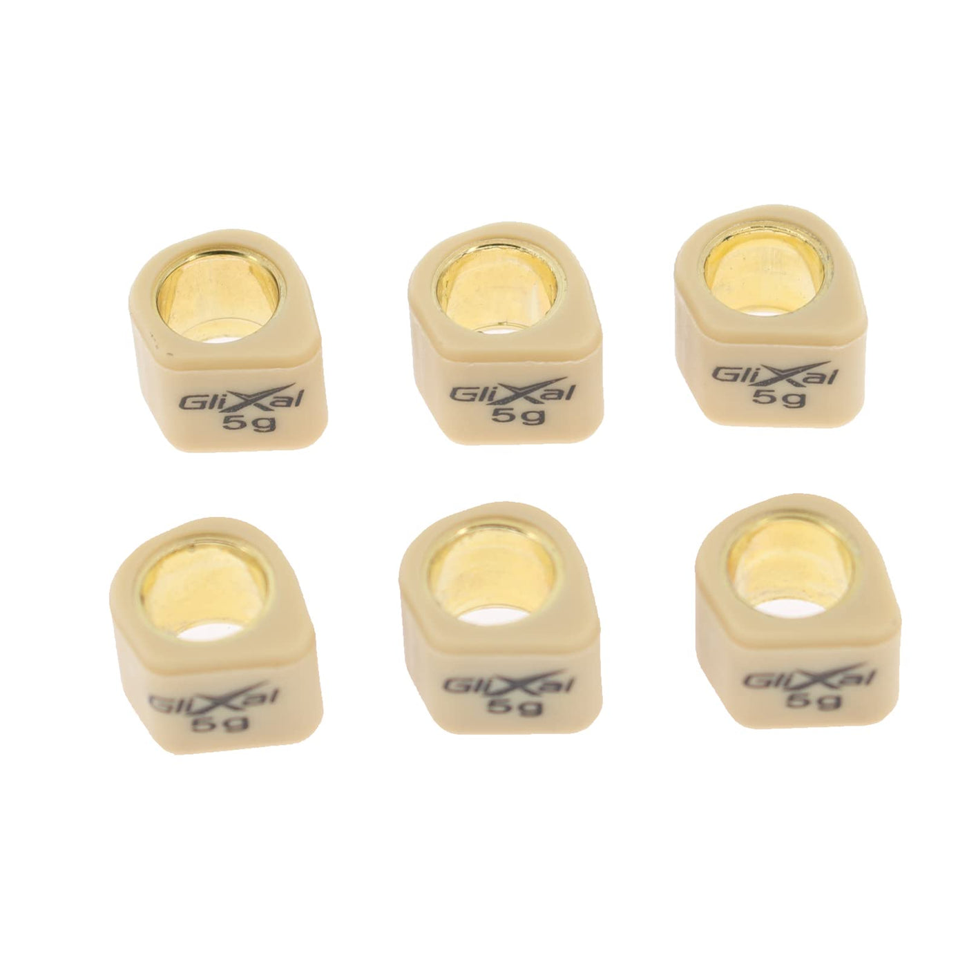 Q: What are Glixal 16x13mm High Performance Polygon Variator Sliders?A: Glixal 16x13mm High Performance Polygon Variator Sliders are replacement roller weights designed for GY6 50cc to 100cc scooters, mopeds, and ATVs. They come in a set of 6 pieces, each weighing 5 grams, and are made from high-temperature resistant nylon material for durability.