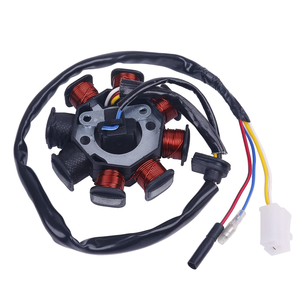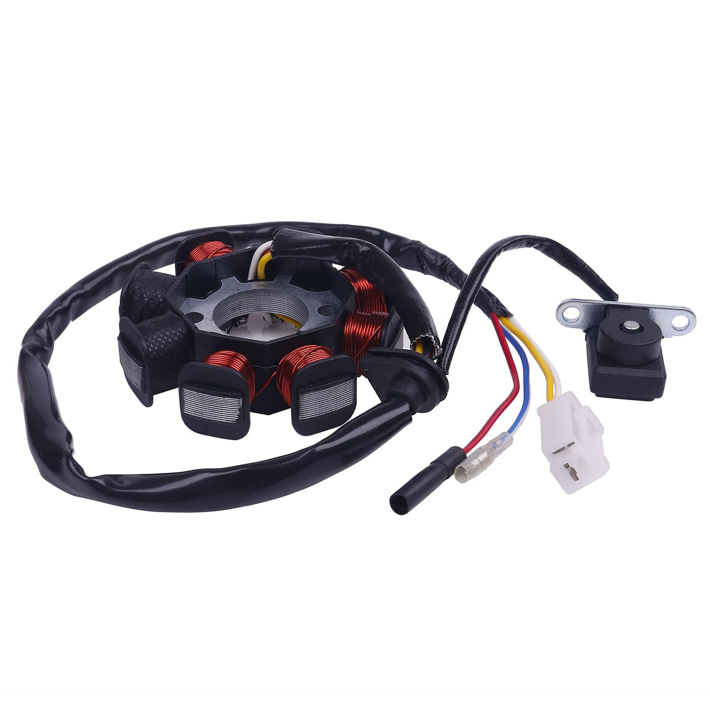 Glixal GY6 49cc 50cc 80cc 100cc 8-Poles Dual Ignition Coils Magneto Stator for 139QMB 139QMA Chinese Scooter Moped ATV Go-kart B