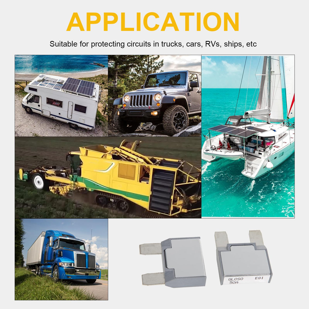Q: What compliance standards does the GLOSO Maxi Blade Circuit Breaker meet?A: This circuit breaker complies with SAEJ553 and SAEJ1171 standards, ensuring it is ignition protected.