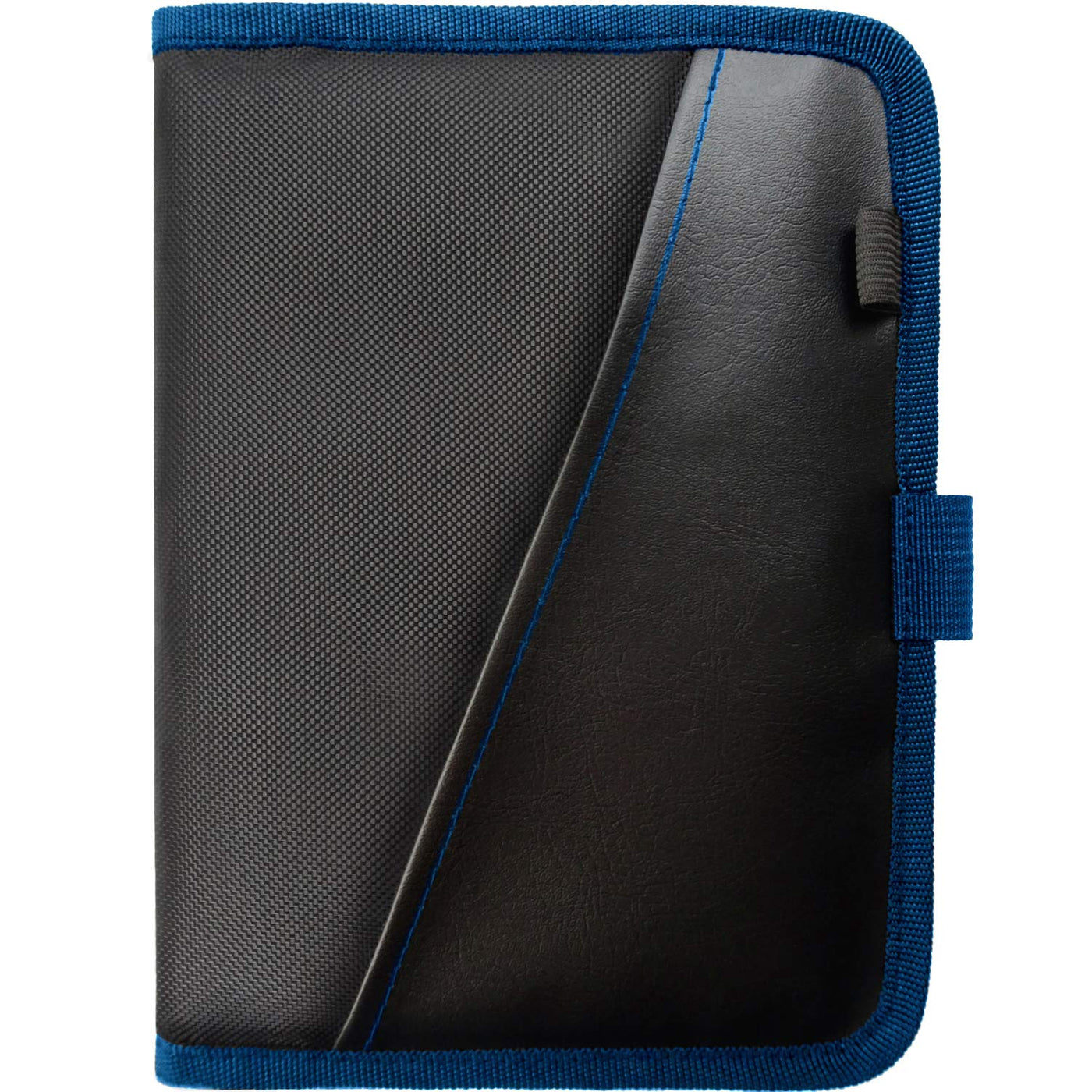 Q: How many pockets does this car document holder have?A: This car document holder features a total of 14 pockets: eight credit or business card pockets, five interior pockets for service and car user manuals, repair receipts, and an exterior stress-reducing pocket for frequently used paperwork.