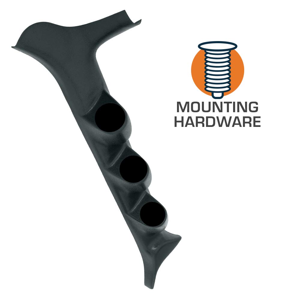 This Black Triple Gauge A-Pillar Pod is an aftermarket pod that is specifically designed for your 1992-1997 Ford F-Series Truck, and allows you to mount three 2 1/16th inch (52mm) gauges to your factory A-pillar for a custom look. This 1992-1997 F-Series triple A-pillar pod is manufactured from high quality ABS plastic that allows it to withstand cracking, fading, and warping. GlowShifts black 92-97 F-Series truck pod can be painted using any ABS plastic paint, and is easily mounted to your factory A-pillar with the included screws. GlowShift includes mounting hardware, installation instructions, and a one year limited warranty with every A-pillar pod purchase.