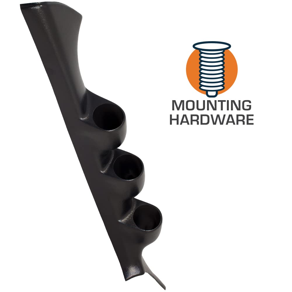 This Black Triple Gauge A-Pillar Pod is an aftermarket gauge pod that is specifically designed for your 2000-2005 Mitsubishi Eclipse, allowing you to mount three 2 1/16th inch (52mm) gauges for a completely custom look. This Eclipse triple A-pillar pod is manufactured from high quality ABS plastic that allows it to withstand cracking, fading, and warping. GlowShifts 2000-2005 Mitsubishi Eclipse pod is paintable using ABS plastic paint, and is mounted to your factory A-pillar with the included screws. GlowShift includes mounting hardware, installation instructions, and a one year limited warranty with every A-pillar pod purchase.