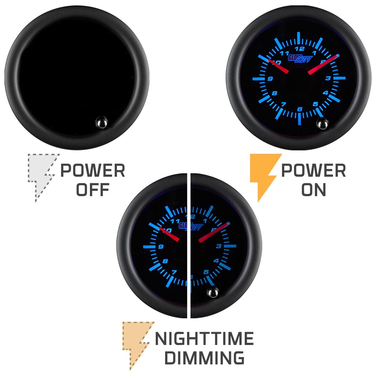 Glowshifts Tinted 7 Series Clock Gauge Allows You To Easily Keep Your Eye On The Time While You Are Driving, Making It The Perfect Addition To Any Vehicle. This Clock Gauge Features An Easy To Read Analog Gauge Face With Hour And Minute Hands, And Offers Glowshifts 7 Color Through Dial Lighting, An Illuminated Red Needle, A Low Profile Magnified Tinted Lens, As Well As Stepper Motor Technology For Extremely Accurate Needle Movement. Our Through Dial Led Lighting System Lets You Easily Cycle Through 7 Solid Color Modes, Along With 2 Color Cycle Modes, Allowing You To Match Your Factory Dash Lights Or Add A Custom Look To Your Vehicles, And For Easier Night Driving This Gauge Will Dim 30% When Connected To Your Factory Headlight Switch. With The Included Color Memory Recall Feature You Wont Need To Worry About Adjusting The Color Of Your Gauge Every Time You Turn Your Vehicle On. This Clock Gauge Is Easily Installed By Simply Connecting The Included Wire Harness To A 12 Volt Source. Glowshift Stands Behind All Of Its Products By Including Free Lifetime Technical Support And A One Year Limited Warranty With Every Gauge Purchase.