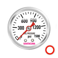 Q: What is the pressure range of the GOATACURA fuel pressure gauge?A: The GOATACURA fuel pressure gauge has a pressure range of 0-1500psi, making it suitable for measuring fuel pressure in various applications.
