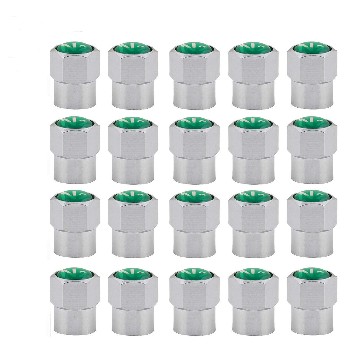 Godeson Pack Of 20 Chrome Plated Brass Tire Valve Stem Caps With N2 Nitrogen Logo