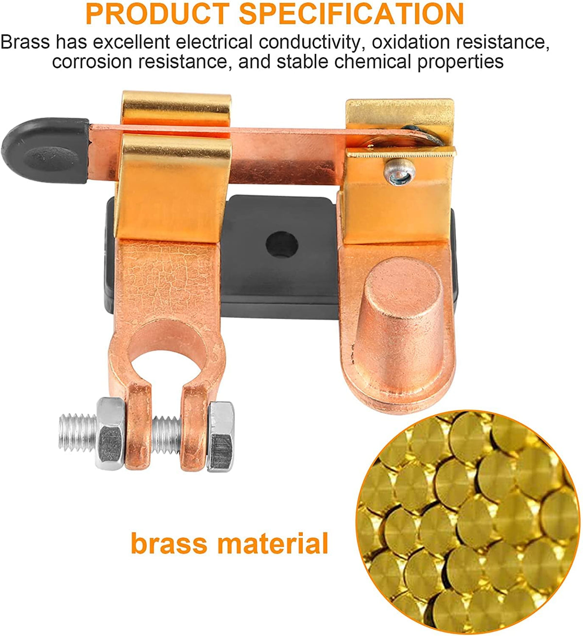Q: What materials are used in the construction of the switch?A: The GOGONFLY Battery Disconnect Switch is made from brass plated with copper, ensuring durability and optimal conductivity. The structural design is heavy-duty, providing reliable isolation for your vehicle's battery.