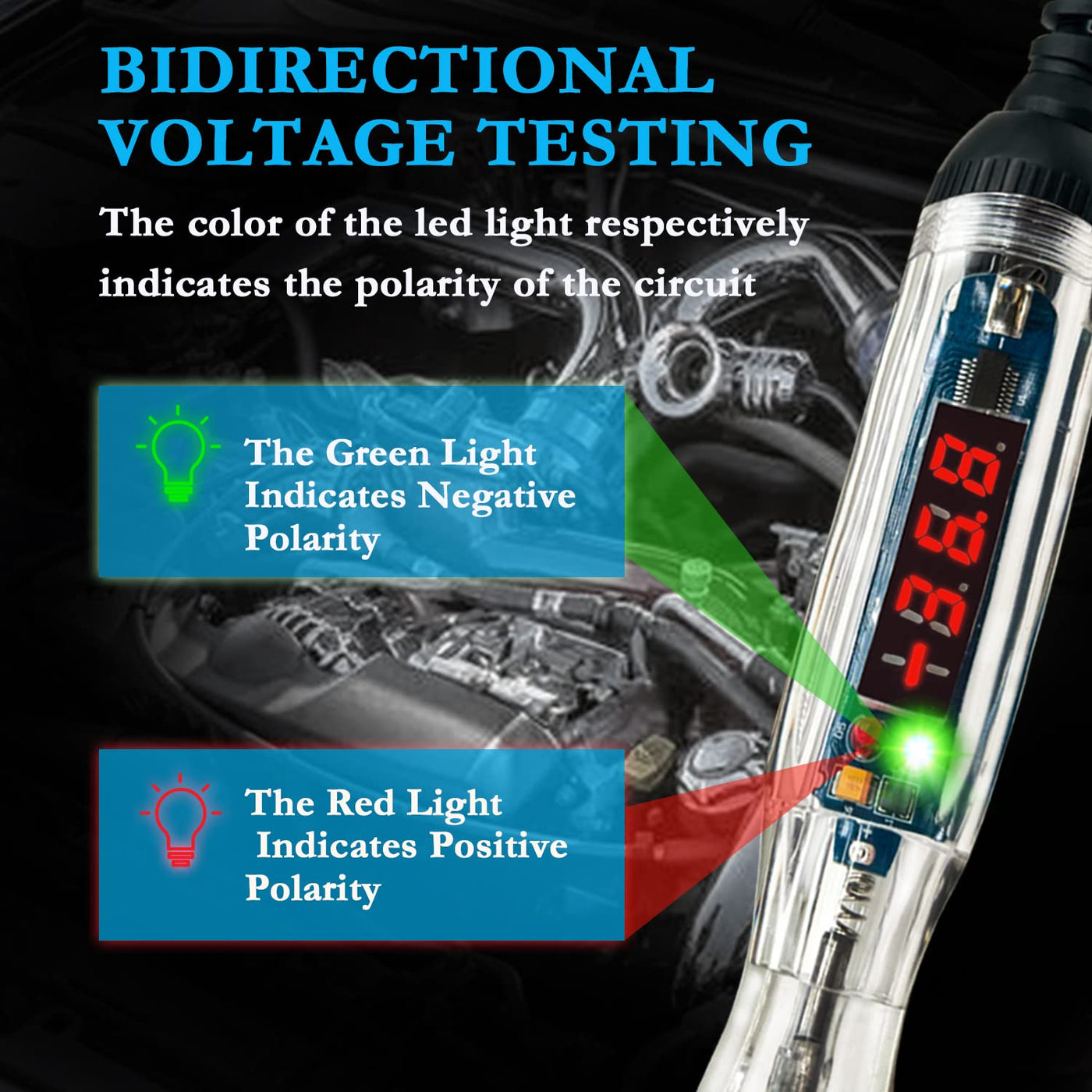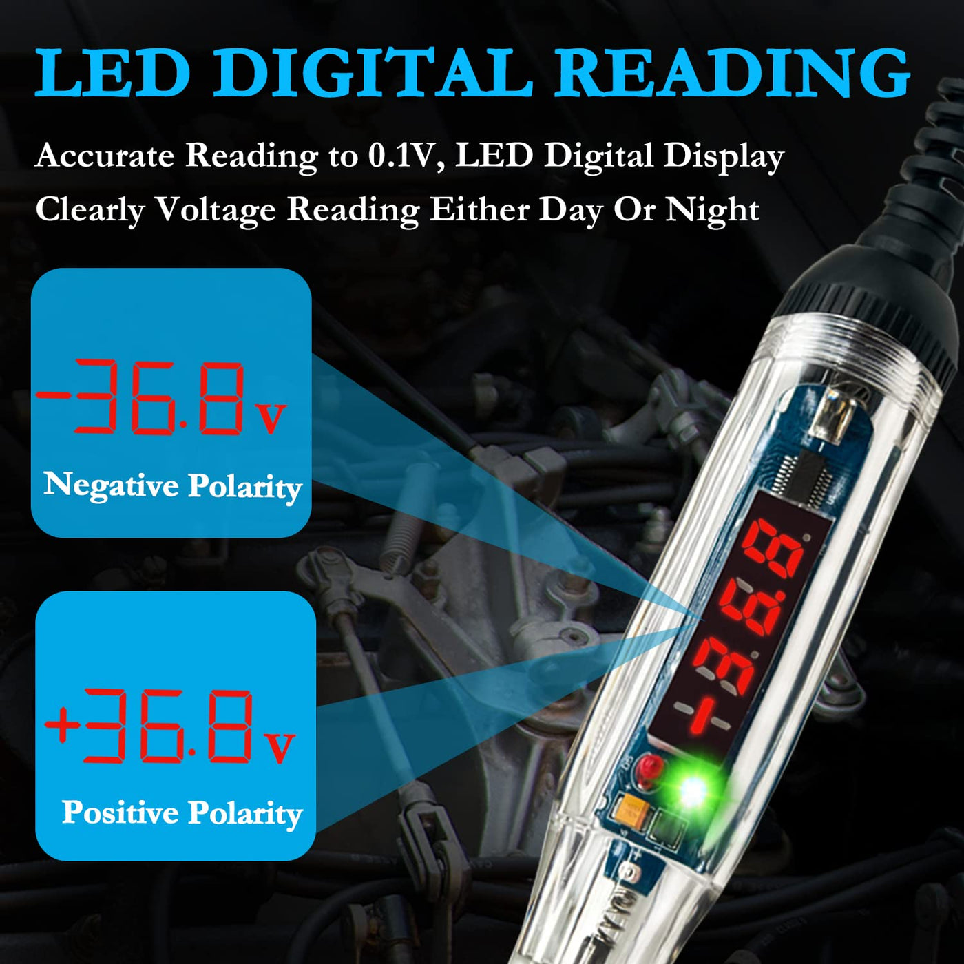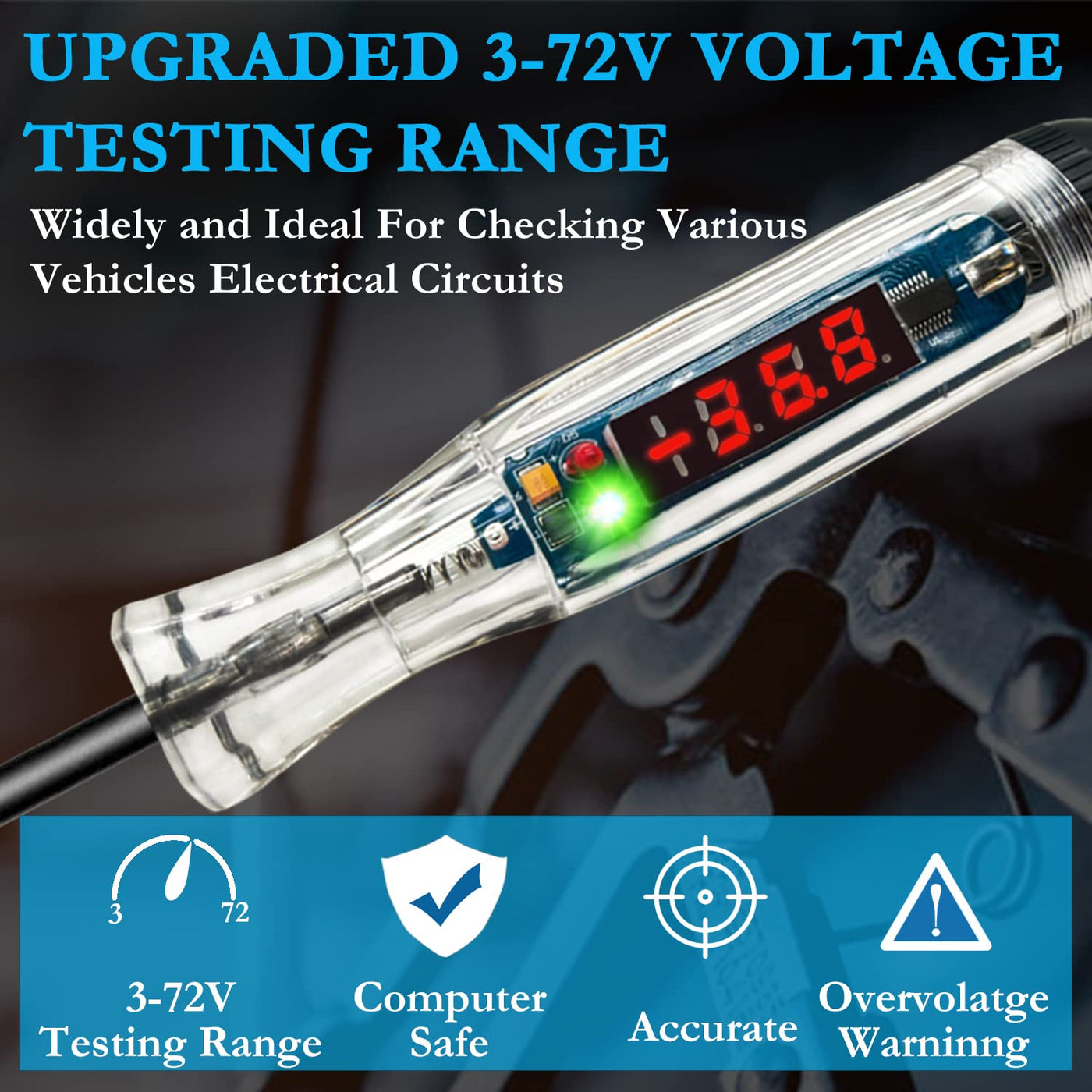 Gogonfly Upgraded 3-72V Automotive Test Light, Heavy Duty Digital Led Circuit Tester With Voltmeter And Dual Color Polarity Indi