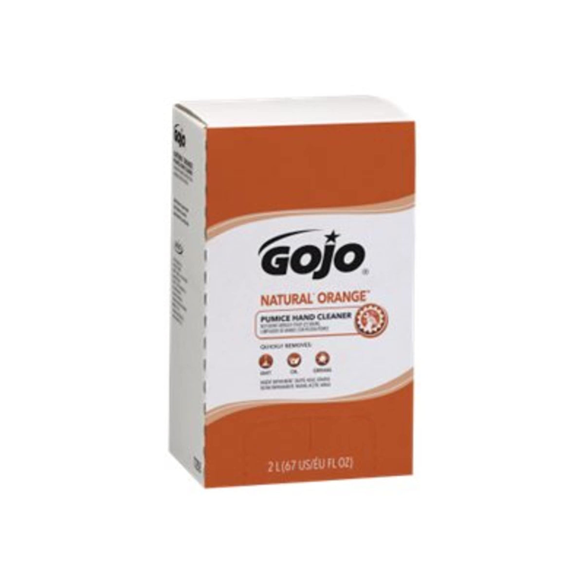Q: What is the main benefit of using GOJO NATURAL ORANGE Pumice Hand Cleaner?A: The GOJO NATURAL ORANGE Pumice Hand Cleaner is a quick-acting lotion hand cleaner that effectively removes dirt, oil, and grease without harsh solvents, making it a safer option for frequent use.