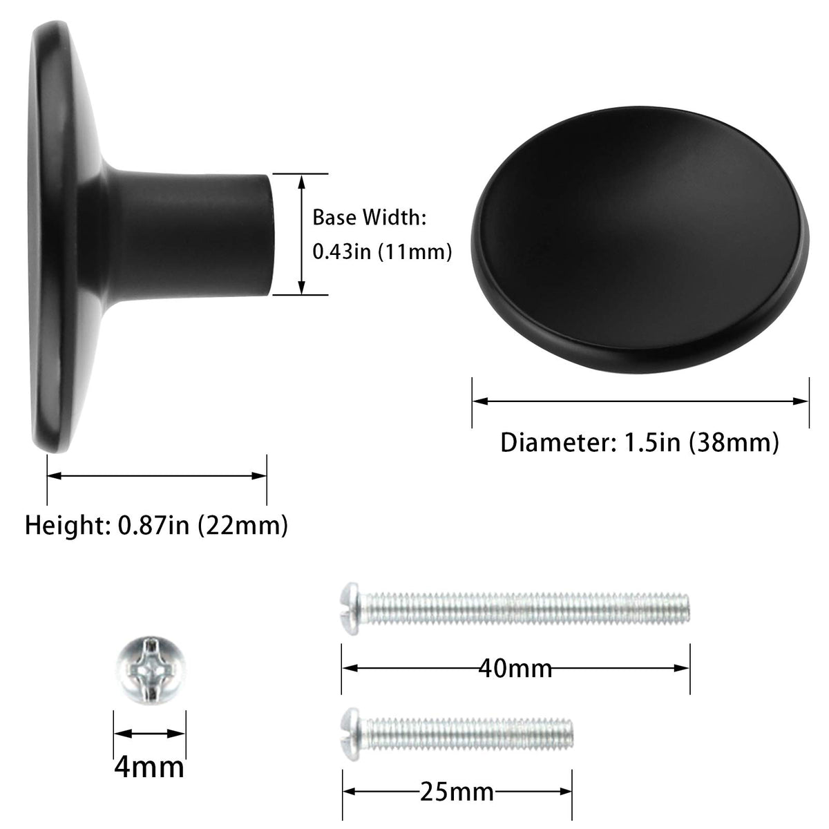 MULTIPURPOSE: goldenwarm cabinet knobs are very simple to install. Highly recommended for cabinets & drawers of every size and color. LET'S RENOVATE YOUR KITCHEN, BATHROOM & BEDROOM! | TEXTURE & APPREARANCE: This black knob is 100% made of zinc alloy, making your home décor looks modern and elegant, simply brighten your cabinets hardware! Comparing to other knobs, zinc alloy drawer knobs bring more solid structure and smoother surface. Highly protective to children and elders, because there is NO SHARP EDGES on our knobs! | MEASUREMENT: Outer Diameter: 1.5'(38mm); Base Diameter: 0.43'(11mm); Height: 0.87'(22mm). | WHAT YOU GET: 10-piece cabinet knobs, wrapped individually and packed carefully, each knob includes two M4 standard screws (1 inch & 1.57 inch). If you need longer screws, please contact us in advance. | AFTER-SALES SERVICE: We promise you 1-YEAR WARRANTY. If you need REFUND or REPLACEMENT, please feel free to contact us at any time. Goldenwarm is always happy to help you!