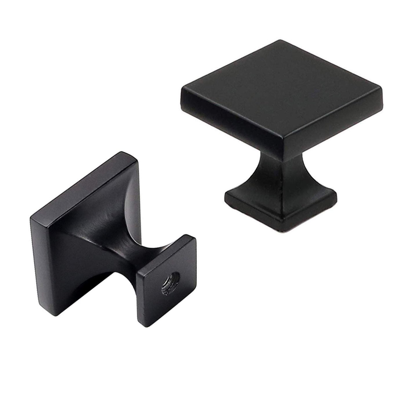 Goldenwarm 25 Pack Flat Black Contemporary Cabinet Knobs - Ls6785Bk Square Black Drawer Knobs For Kitchen Cabinets Black Hardware 1.1 Inch Width