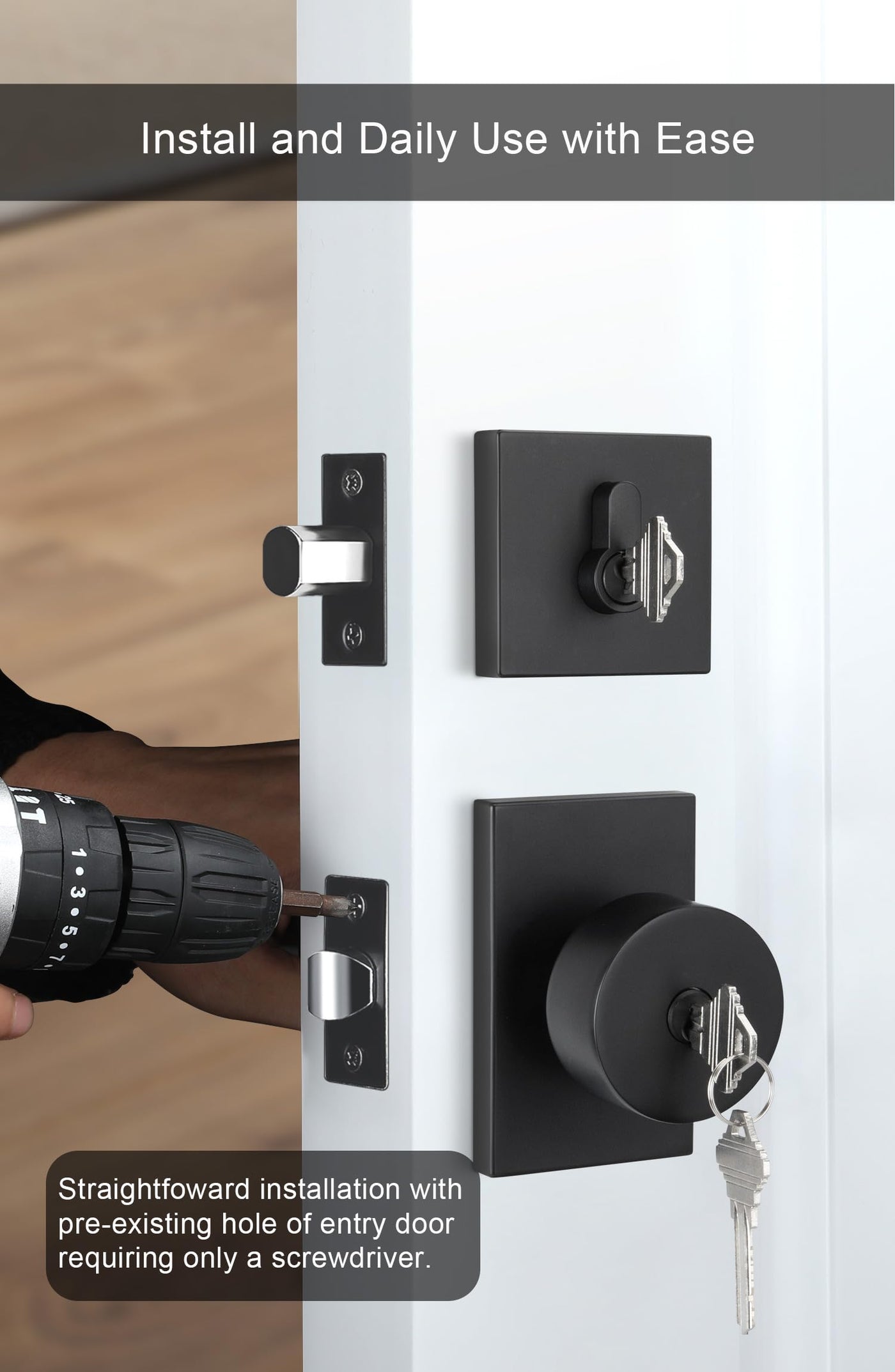 Q: Is the black color of the goldenwarm door knob and deadbolt durable over time?A: Yes, the matte black finish on the goldenwarm door knob and deadbolt is designed to last, and the paint will not come off with proper use, ensuring a long-lasting aesthetic.