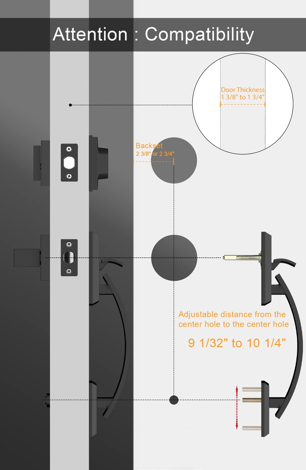 Q: Is this double door lock set suitable for all door sizes?A: Yes, the goldenwarm Double Front Door Lock Set features an adjustable latch that fits backsets of 2 3/8" or 2 3/4". It is compatible with doors that are 1 3/8" to 1 3/4" thick, making it versatile for various door sizes.