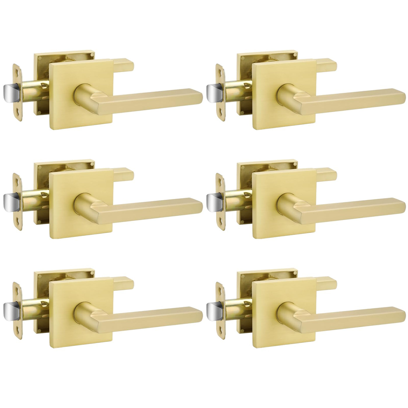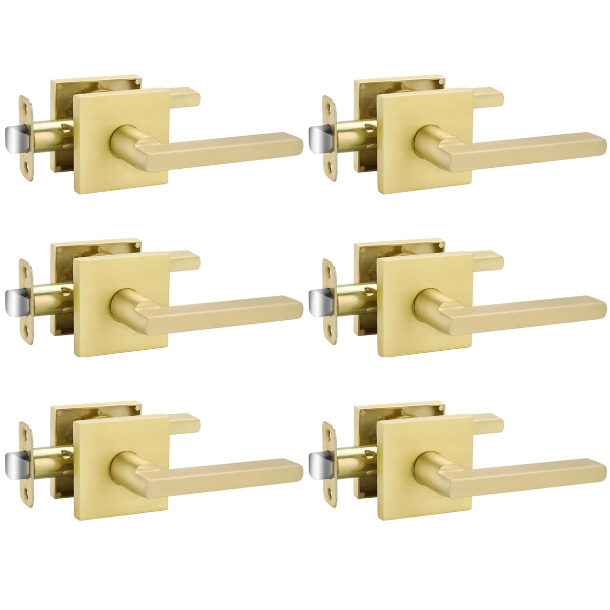 Goldenwarm Gold Passage Door Handles, Zinc Alloy Brushed Gold Closet Door Handles, Brushed Brass Hallway Lever Doorhandles, Passage Door Hardware For Hallways, Closets(6 Pack)
