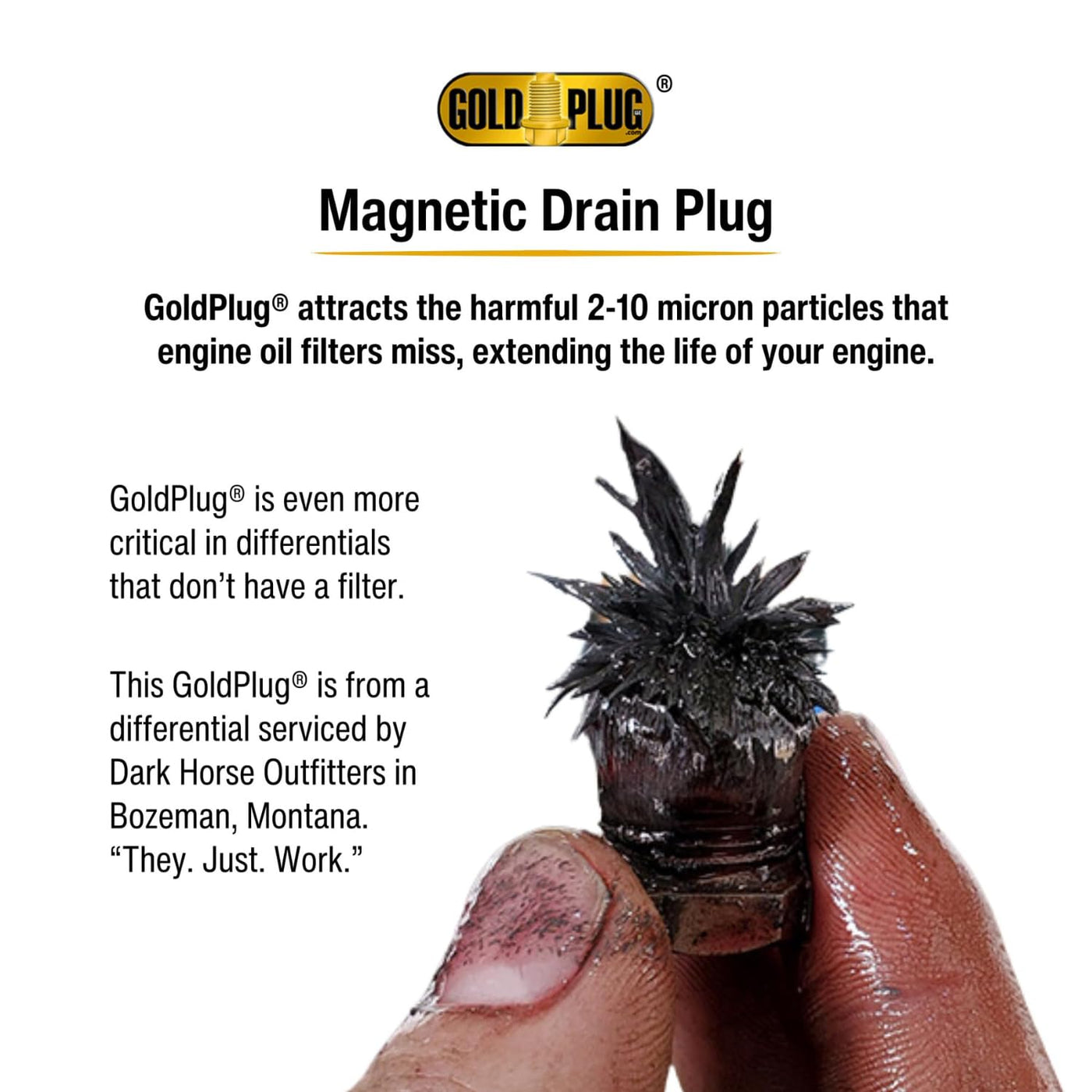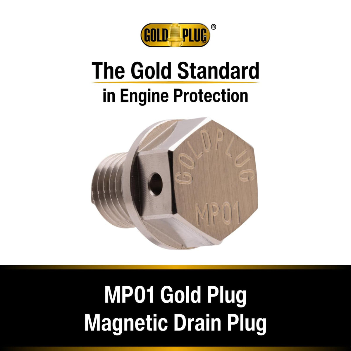 Q: What makes the GoldPlug MP01 Magnetic Drain Plug different from standard drain plugs?A: The GoldPlug MP01 features a powerful magnetic design that attracts and holds metal particles from your engine oil, reducing wear and extending the life of your engine. Unlike standard drain plugs, it ensures superior protection by preventing harmful debris from circulating in your engine.