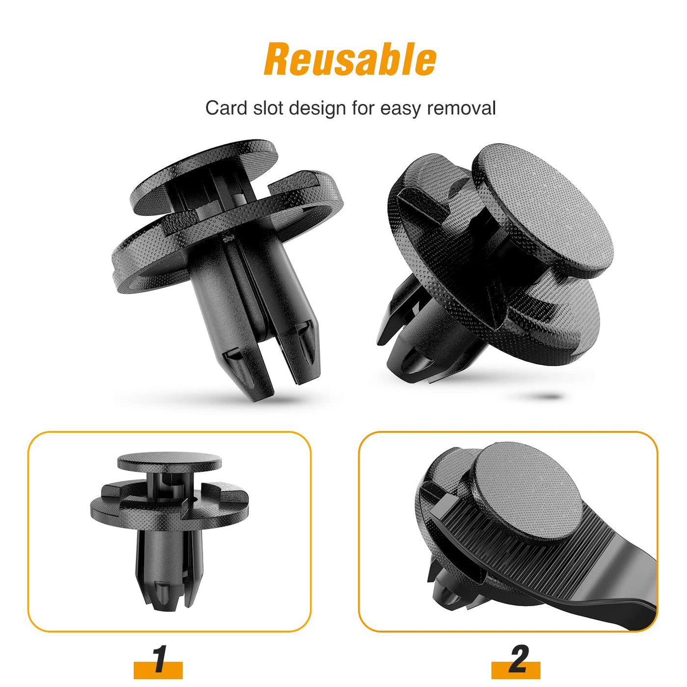Replacement for Nissan Infiniti selected models, push-type retainer clips. Made of high quality material, its sturdy and durable, fit tight on your car and wont be loosened as time passing. Head Diameter: 20mm,Stem Length: 12mm, Stem diameter: 8mm, Fits Into 8mm Hole. Original part number: 01553-05323.