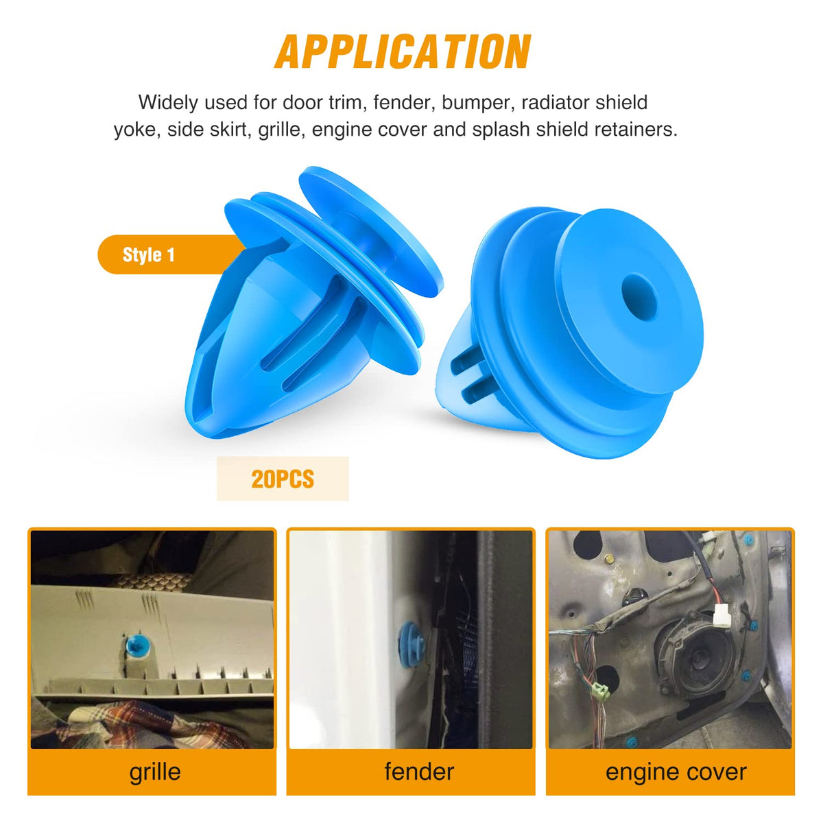 Specification: Universal fastener clips and remover 5 Whole sizes from from 6.5mm(41/16 ),8mm(5/16''),9mm(23/64''), 9.5mm (37/100 ),11mm(43/100 ). 6 different Push pin rivet for many brand vehicles. Material: Made of durable nylon. Suitable for car use better replacement for original bumper and fender clips. Push in type, easy to fasten bumper fender flare and mud flap. Rivet post pressure expands legs for fast and tight fastening. Features Tough Fastener Removal Tool Allow you to quickly and easily remove car door panel and upholstery clips without causing damage to them. Multiple Application Locations A must have for any four wheeler owner to keep those fenders and splash guards attached and intact. Removable and Reusable Holds securely but is easily removed without damaging it for reuse. Just pop the post out with a fastener remover. Size: 120Pcs Car Retainer Clips plus Fastener Remover Specification: material: high quality nylon, suitable for car Use better replacement for original old worn broken one. Push type, easy to fasten.
