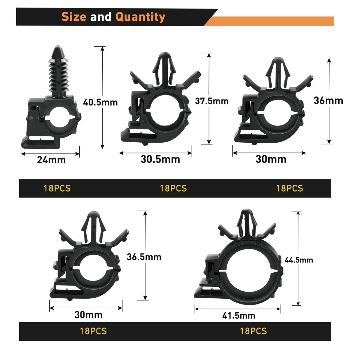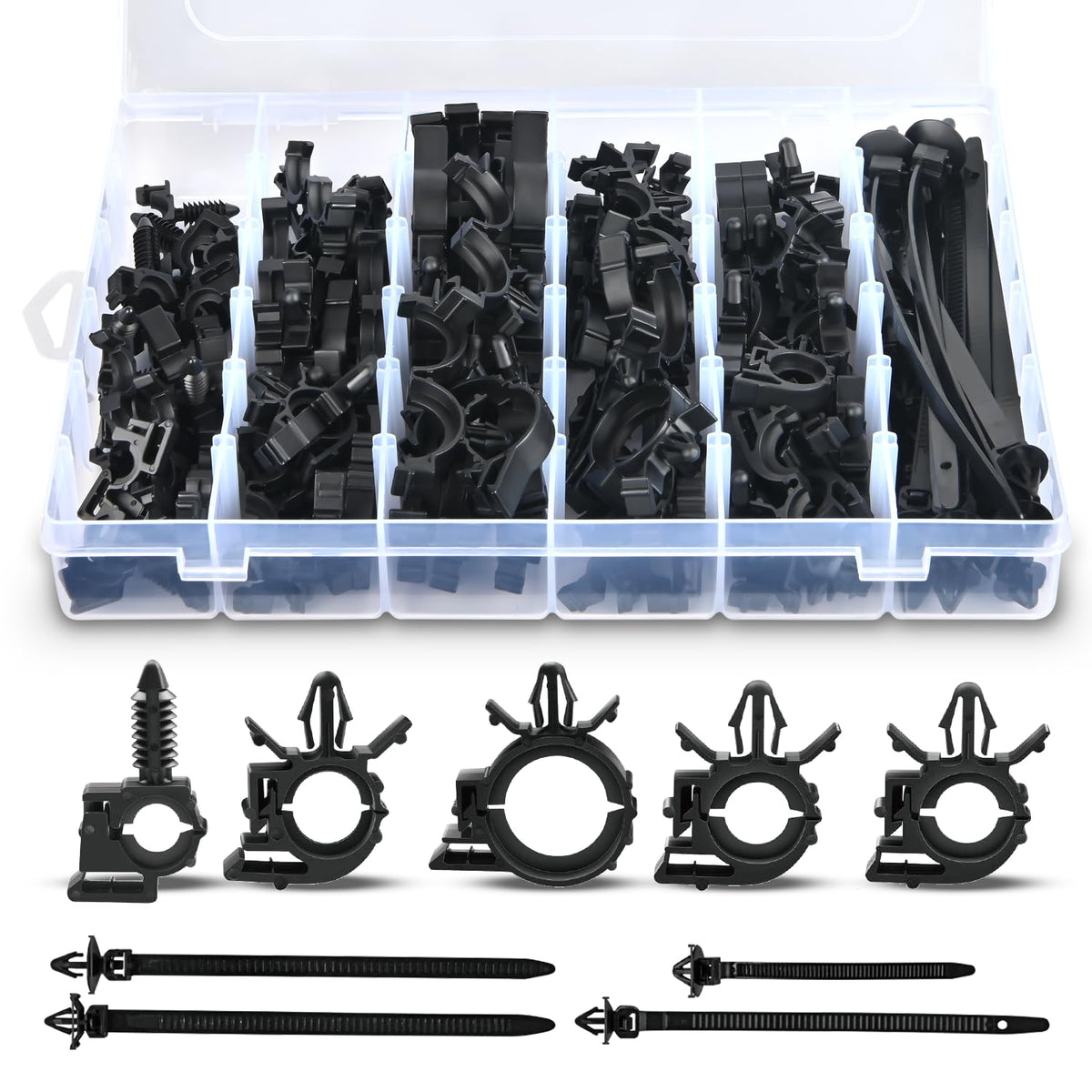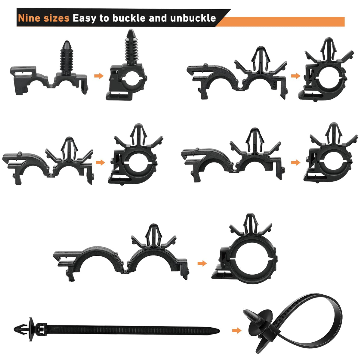 Gooacc 130Pcs Car Wire Loom Routing Clips Assortment - 9 Different Sizes Universal Wiring Harness Routing Clip Replacement Parts