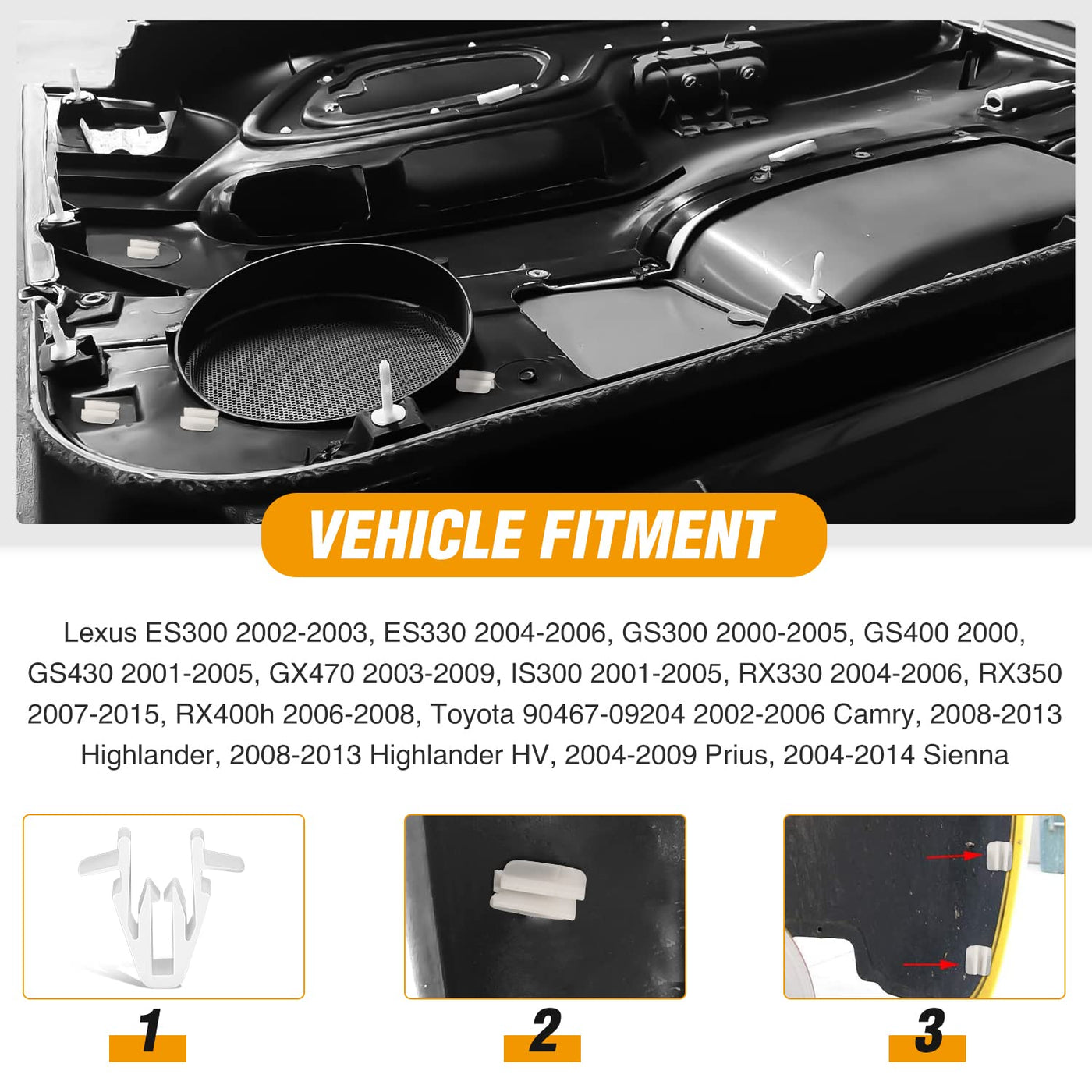Fitment: For Toyota Lexus 90467-09204, Gs 300, Gs 400, Gs 430, Gx 470, Rx 330, Rx 350, Rx 400 & Rx 450 And Toyota Camry, Highlander, Prius & Sienna | Dimension: Overall Height: 14Mm | Material: Made Of High-Quality White Nylon Material, Anti-Wear, And Anti-Corrosion, Would Not Break Or Crack Easily During Use, Push In Type, Fast And Tight Fastening | Other Names: Cowl Trim Fastener, Retainer, Windshield Pillar Trim Fastener, Side Trim Panel Clip, Upper Trim Panel Clip, Windshield Pillar Trim Clip, Clip, Side Frame Retainer, Side Trim Panel Retainer | Package: 50Pcs Rear Hatch Door Side Garnish And Front Body Pillar Garnish Moulding Clip