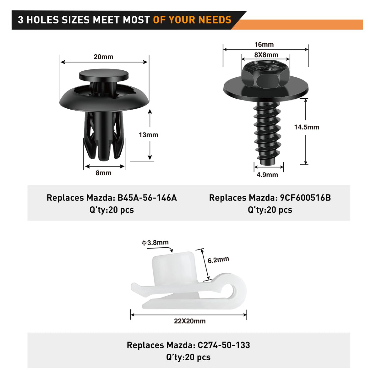 ?Compatibility?-Our Kit Includes 20 Nylon Screw Insert Retainers For Maximum Compatibility With Our Screws, Making It Easy To Mount License Plates Or Frames On Mazda 2, 5, 6, Cx-5, Cx-7 & Cx-9 2014 - 2010 | ?Oem Quality?- Made Of High-Quality Material, These Retainer Clips Are A Perfect Replacement For Mazda C274-50-133 B45A-56-146A 9Cf600516B | ?Durable Material?- With High-Quality Polished Stainless Steel, Our Screws Are Designed To Last, Prevent Rust And Corrosion, And Save Time And Effort. | ?Easy Installation?- Our License Plate Fastener Kit Can Be Secured And Installed In Just Minutes With A Simple Phillips Screwdriver ,No Special Tools Are Required. | ?Great Value?-Our Package Includes 60Pcs Fastener Rivet Clips To Ensure You Have Enough For Your Project