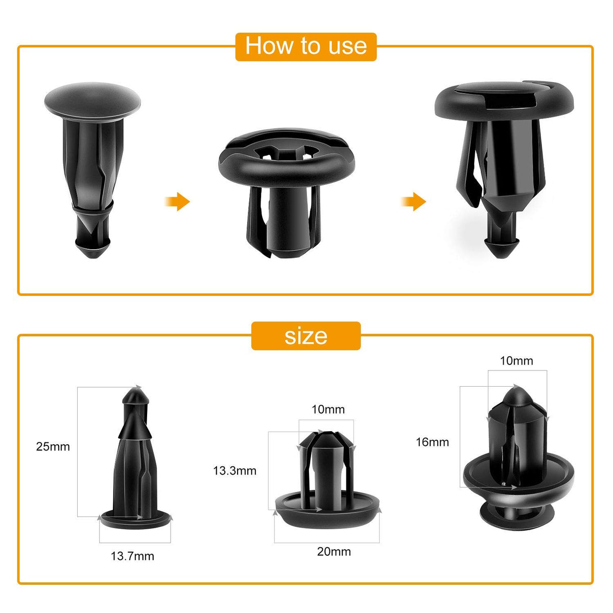 7mm hole great for GM: 1595864,1605396; Chrysler: 6030441; Ford: 388577S,W705589-S300 .Fits for Ford, GM, Chrysler, Theses push clips are widely used for trim panel clips, door trim clips, door panel clips, bumper clips, Fender clips, engine cover and splash shield retainers8mm hole widely used for door trim, radiator shield yoke, fender, bumper, side skirt, grille, engine cover and splash shield retainers''10mm hole great for Acura: 91503-SZ3-003 Honda: 91503-SZ3-003,Fit for HONDA 1997-2011 Accord 1997-2010 Civic 1999-2010 CR-V 1984 1991 CRX 1993-1997 Del Sol 2003-2010 Element 2007-2010 Fit 2000-2006 Insight 1996-2010 Odyssey 2003-2010 Pilot 2007-2001 Prelude 2006-2010 Ridgeline 2000-2008 S2000 Acura 2001-2003 CL 1996-2001 Integra 2001-2010 MDX 2007-2010 RDX 1996-2010 RL 2002-2006 RSX 1997-2010 TL 2004-2010 TSX''