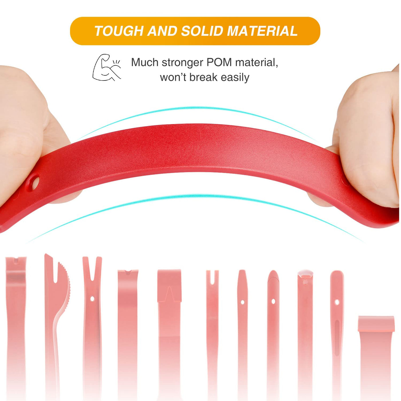 Q: Is the material of the tools durable and safe for use?A: Absolutely! The GOOACC trim removal tools are made from high-quality, resistant nylon fiber material, ensuring durability and a non-toxic, eco-friendly design that minimizes breakage during use.