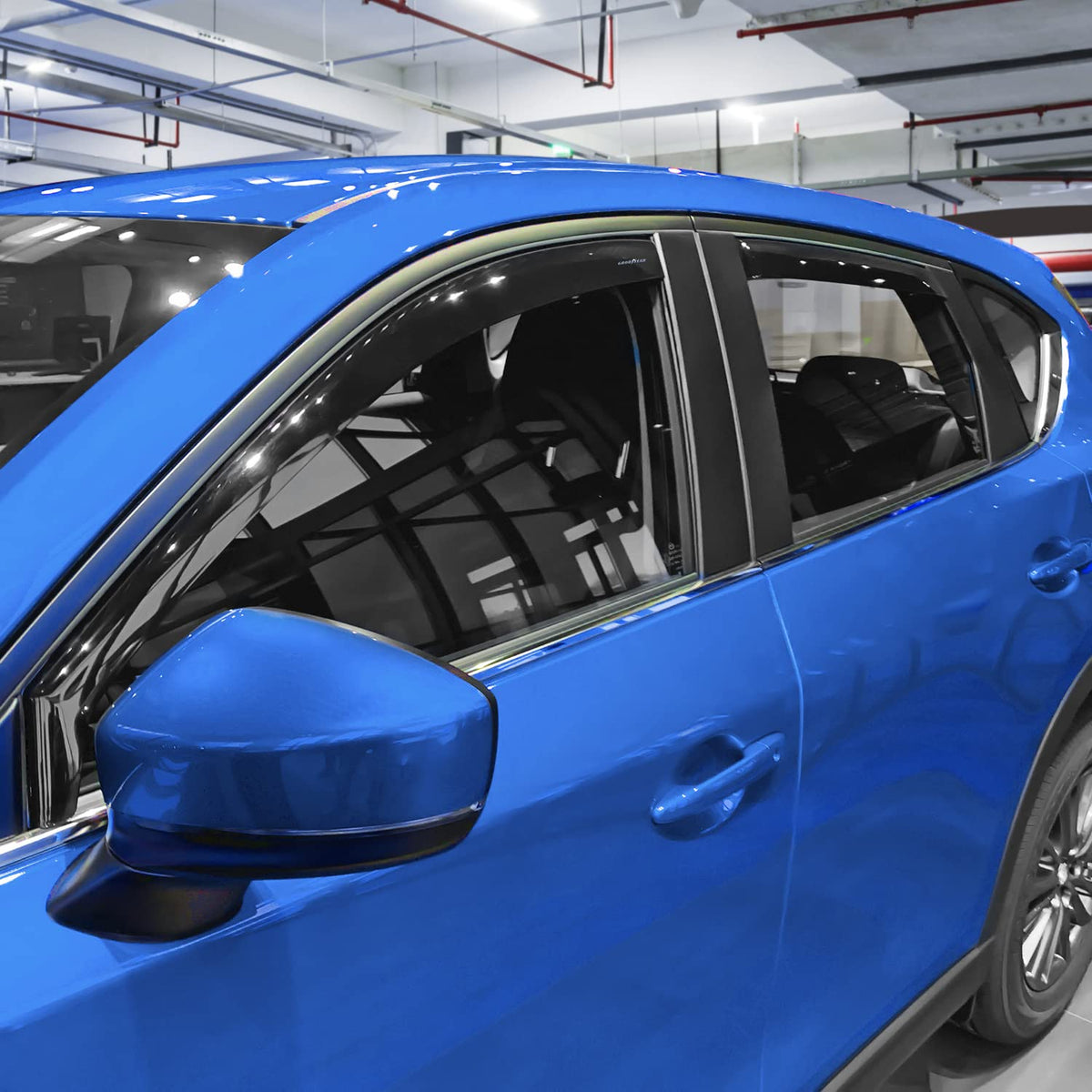 Goodyear side window deflectors the famous high quality in-channel rain guards that let you drive with your window down in rain, snow, ice and other inclement conditions. Product features: Made from durable, shatterproof polycarbonate; Allows fresh air circulation; Protects from rain and snow; Great for hot days and smokers; Backed by Limited Lifetime Warranty; Windows close tightly; Fits on top mirror mounts, no need to remove; Gives your vehicle a cool upgraded look; Car wash friendly. Provides a custom fit: - for Mazda CX-5 2017-2025. Package includes: 2 Front deflectors; 2 Rear deflectors; Plastic blade; Degrease wipes. Installation instructions. Branded Goodyear color box. Protective shipping box. 100% money guarantee ensures this will be your best bet for a pleasing no-risk purchase. Many customers love these Goodyear Window Guards so much they return to buy more. This makes a much appreciated gift for friends, family, and co-workers.
