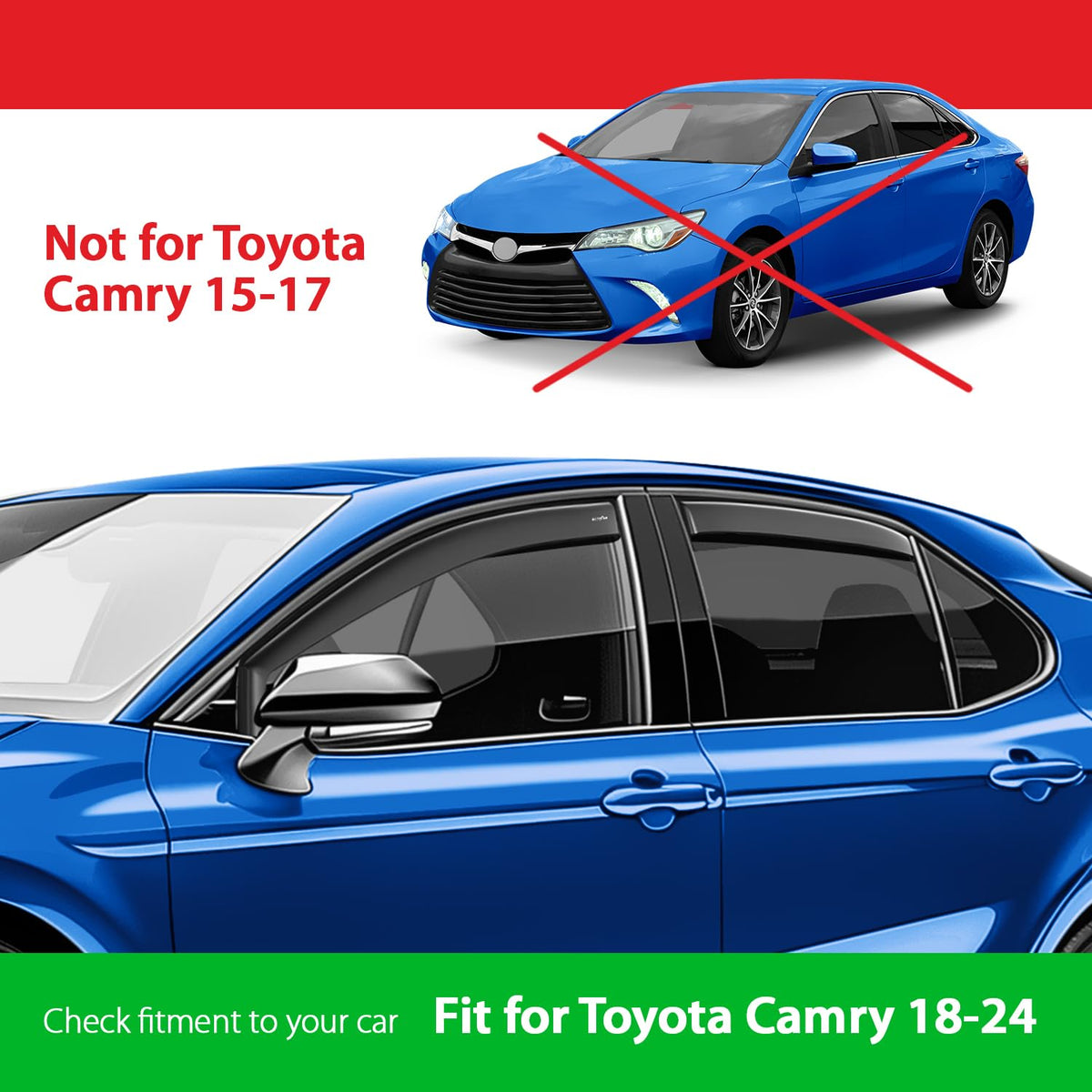 Goodyear side window deflectors the famous high quality in-channel rain guards that let you drive with your window down in rain, snow, ice and other inclement conditions. Product features: Made from durable, shatterproof polycarbonate; Allows fresh air circulation; Protects from rain and snow; Great for hot days and smokers; Backed by Limited Lifetime Warranty; Windows close tightly; Fits on top mirror mounts, no need to remove; Gives your vehicle a cool upgraded look; Car wash friendly. Provides a custom fit: - for Toyota Camry 2018-2023. Package includes: 2 Front deflectors; 2 Rear deflectors; Plastic blade; Degrease wipes. Installation instructions. Branded Goodyear color box. Protective shipping box. Full money refund ensures this will be your best bet for a pleasing no-risk purchase? Many customers love these Goodyear Window Guards so much they return to buy more. This makes a much appreciated gift for friends, family, and co-workers.